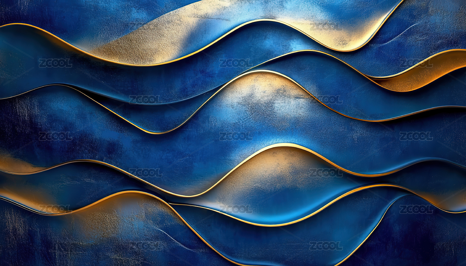 蓝色纸张堆叠形成的抽象波浪纹理图案