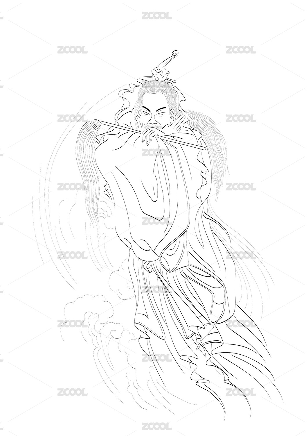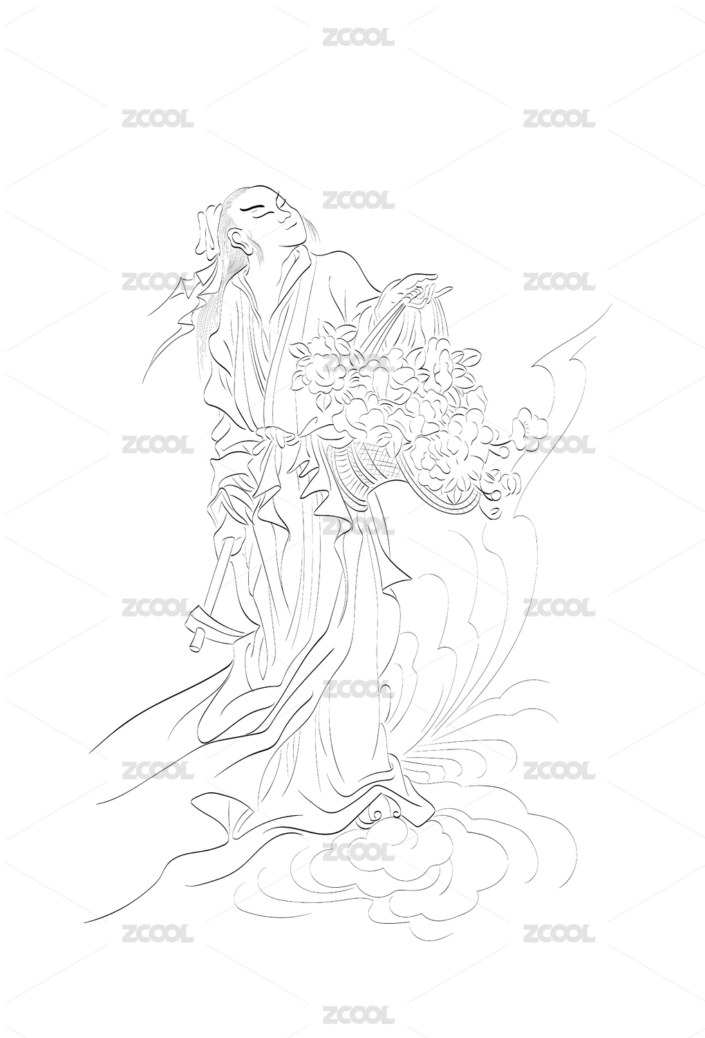 嫦娥奔月中秋佳节元素线稿手绘插画