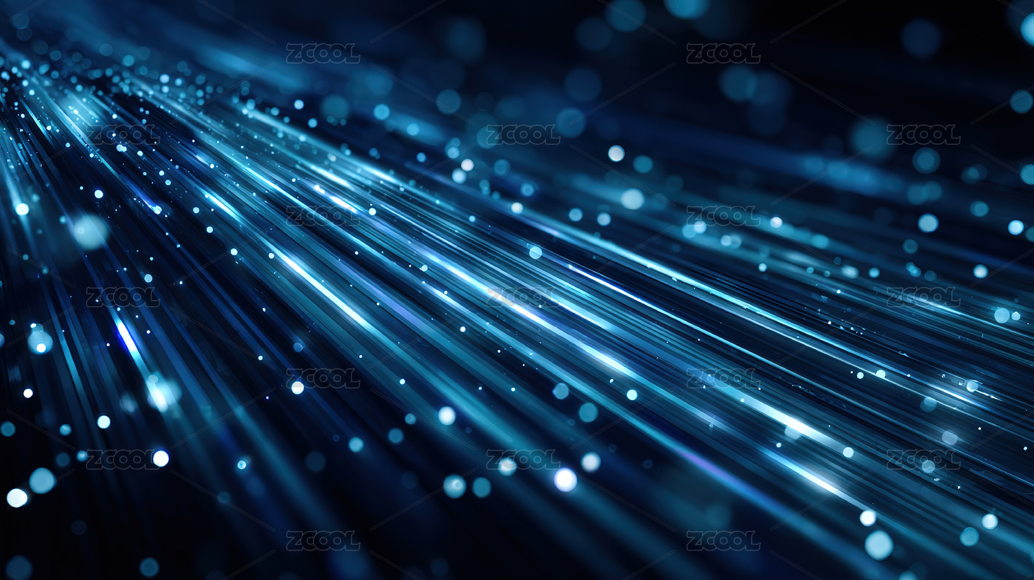 黑色背景下被照亮的蓝色光纤的特写镜头