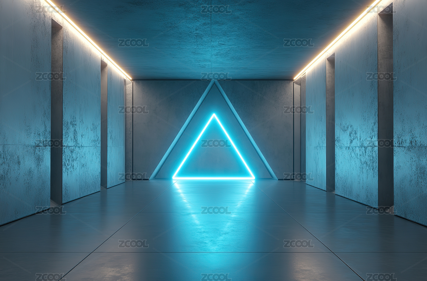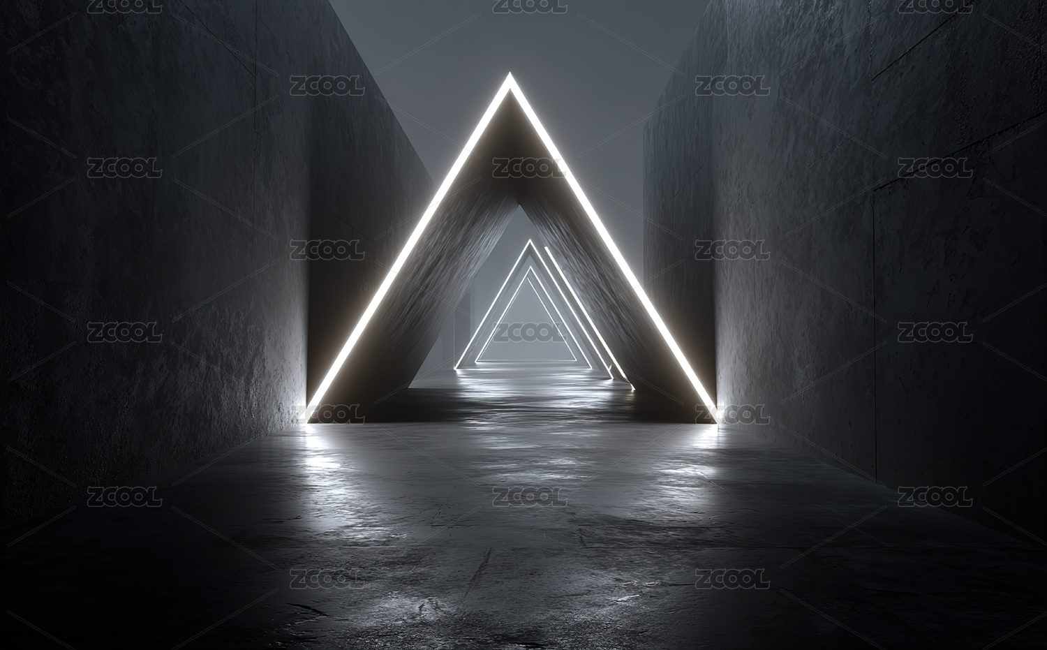 光亮三角形走廊的未来感空间