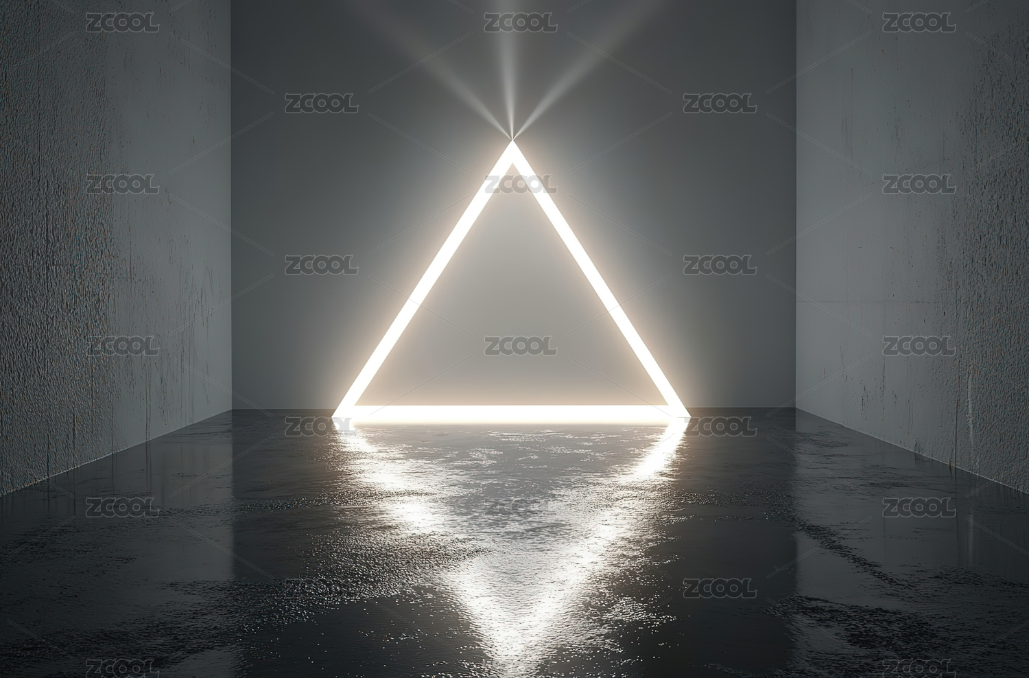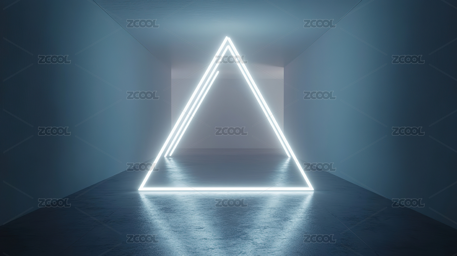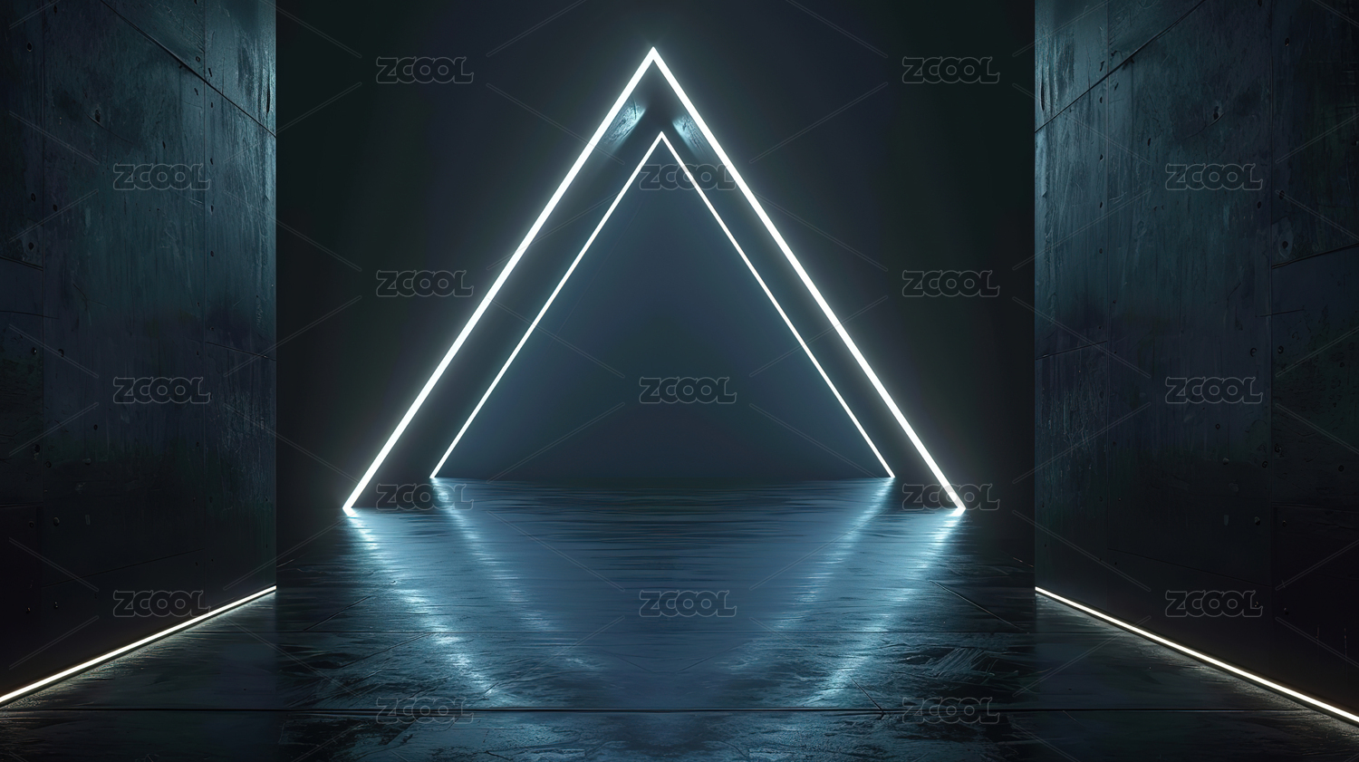 黑暗走廊中的发光三角形光影
