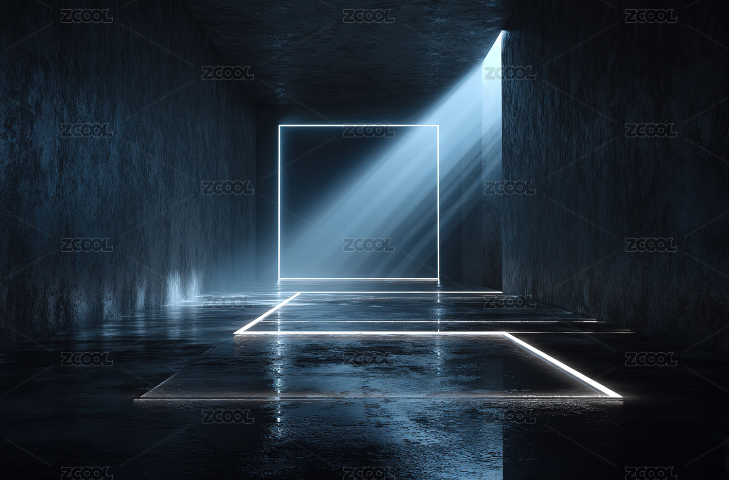 蓝色光束构成的三角形空间