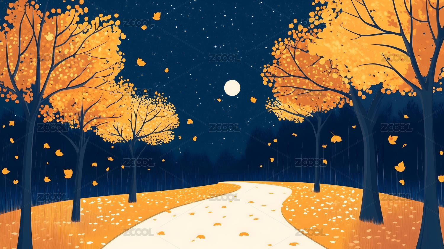 秋夜星空与枫林小路