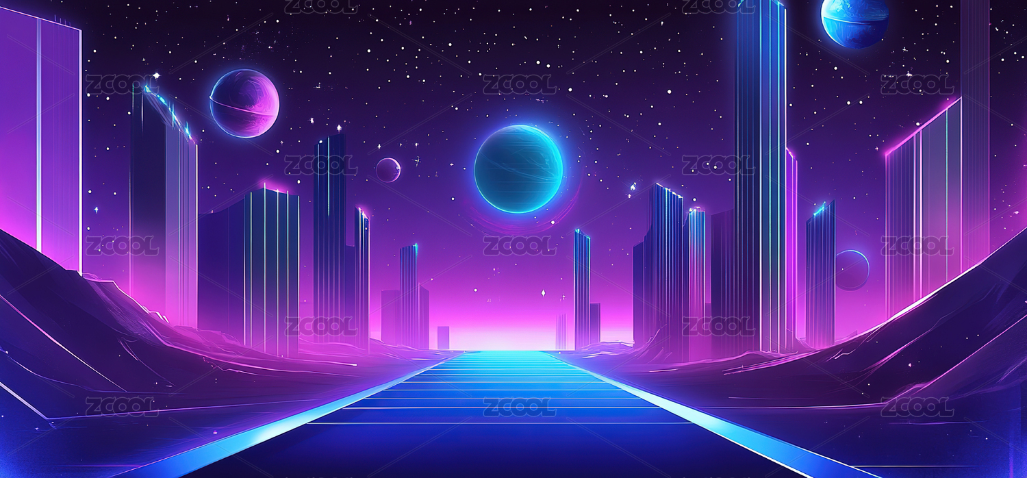赛博朋克城市夜景未来PPT海报主视觉背景