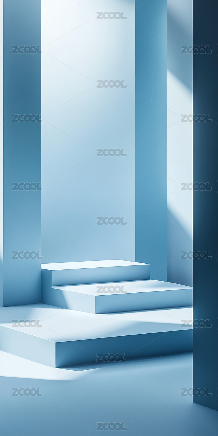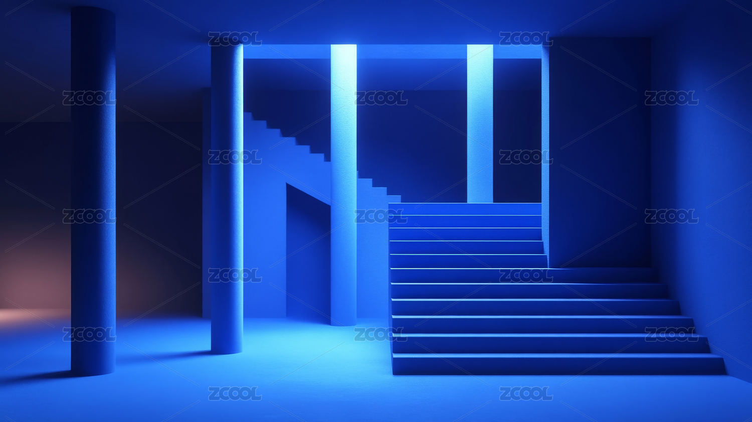 蓝色调的空间与阶梯