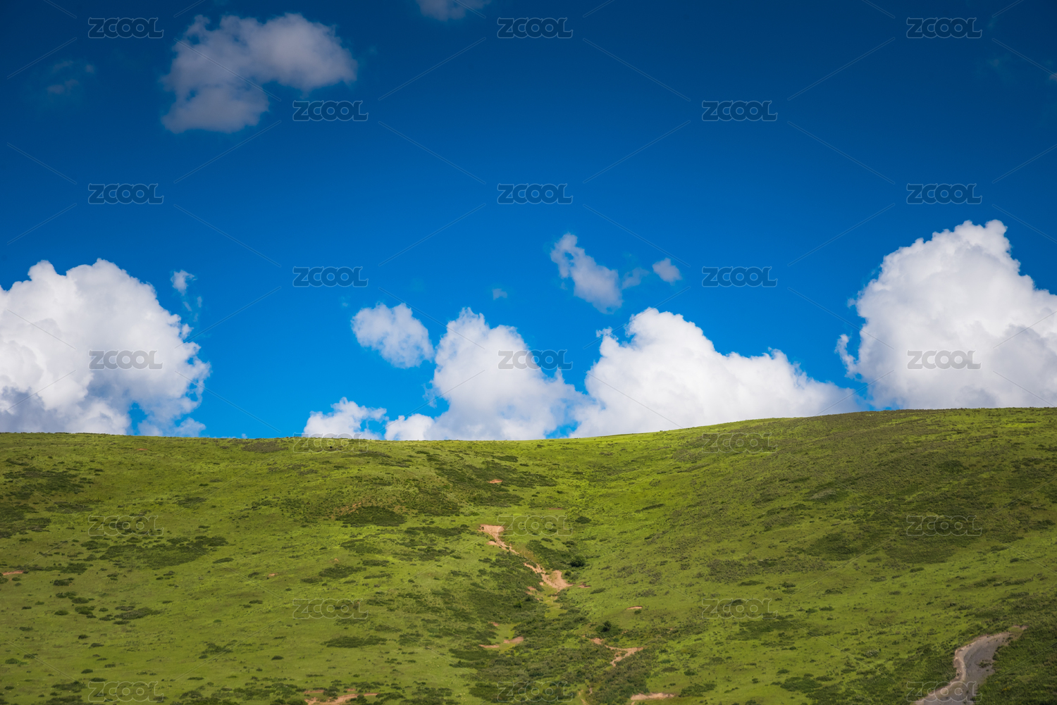草地白云治愈风景