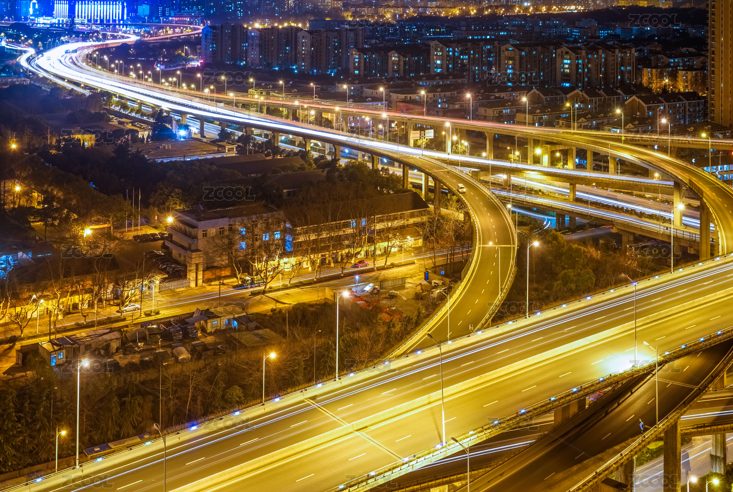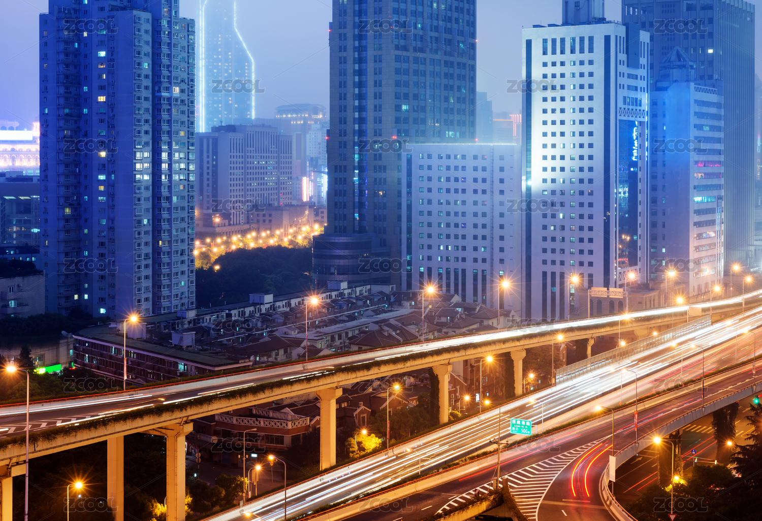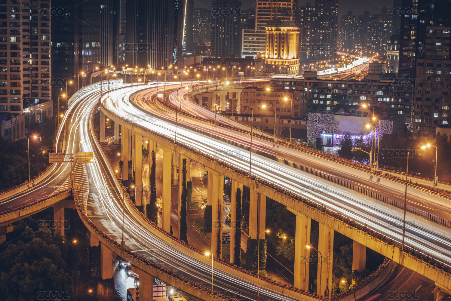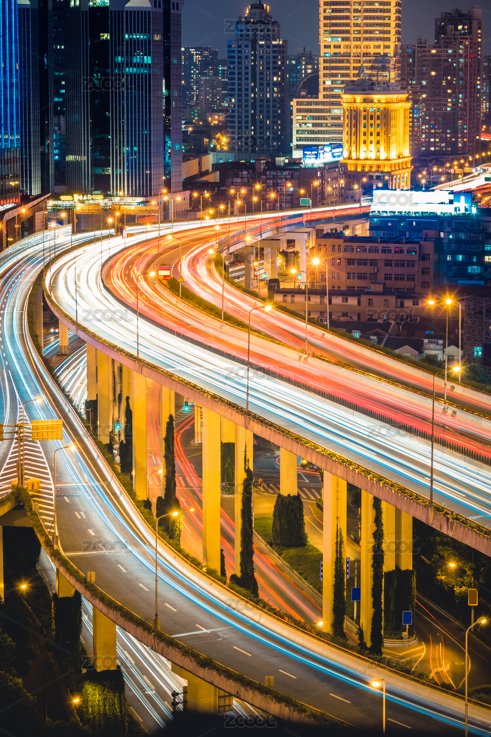 高楼建筑林立之中曲折蜿蜒的城市道路
