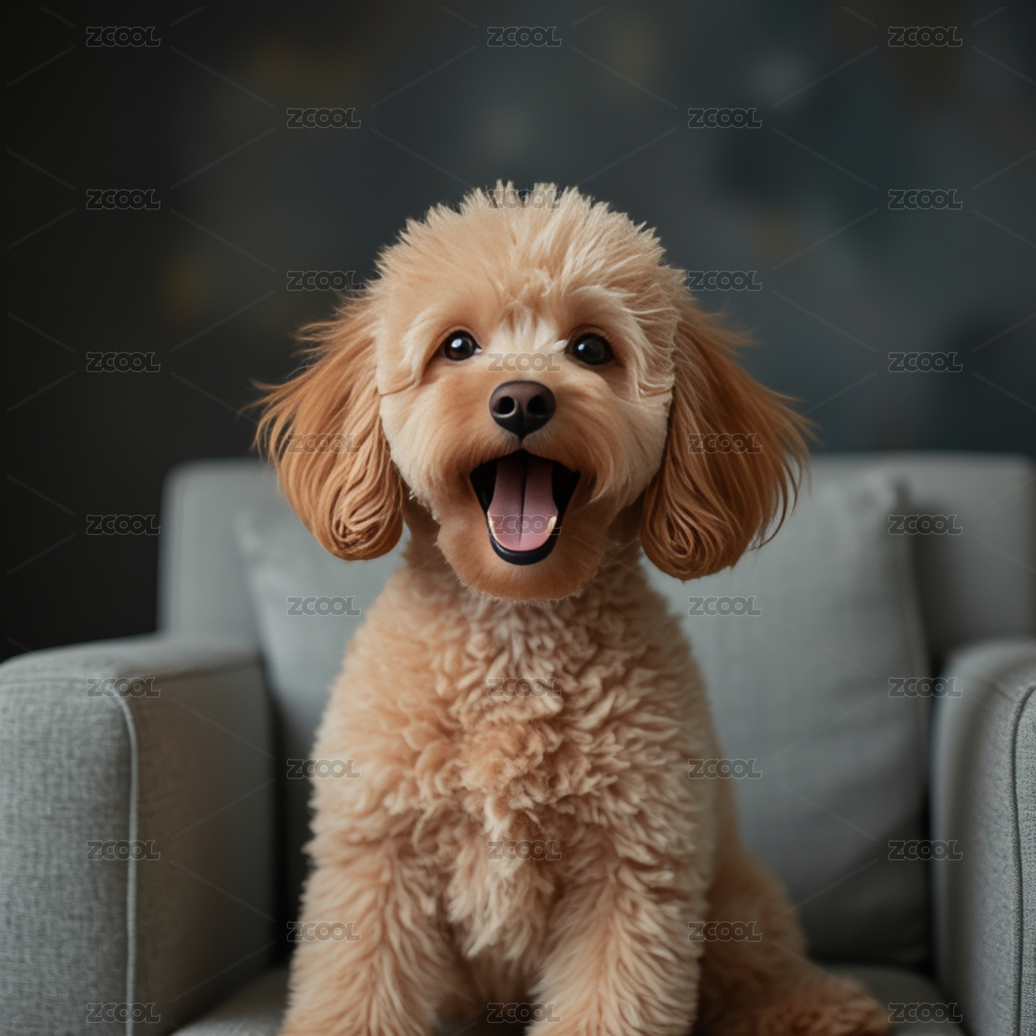 家庭沙发上趴着的灰色贵宾犬