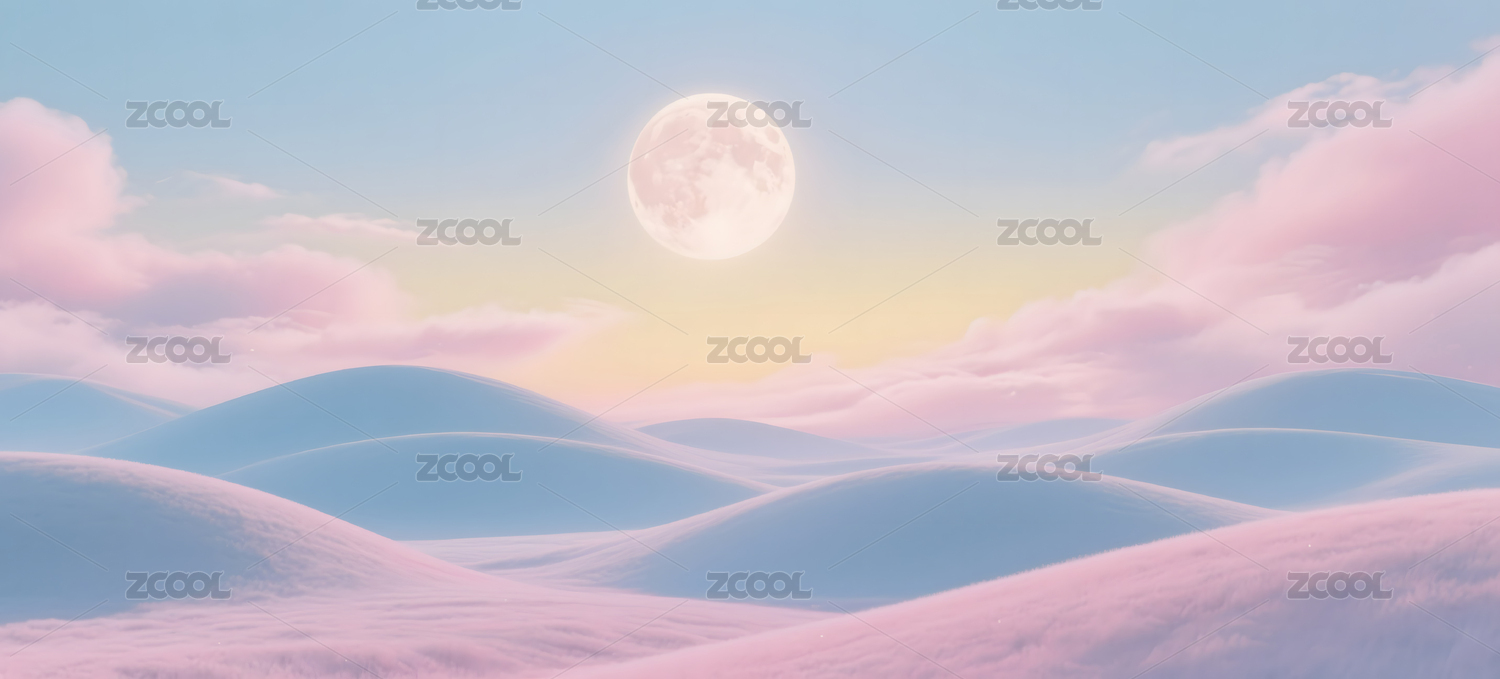 梦幻粉色雪原月夜