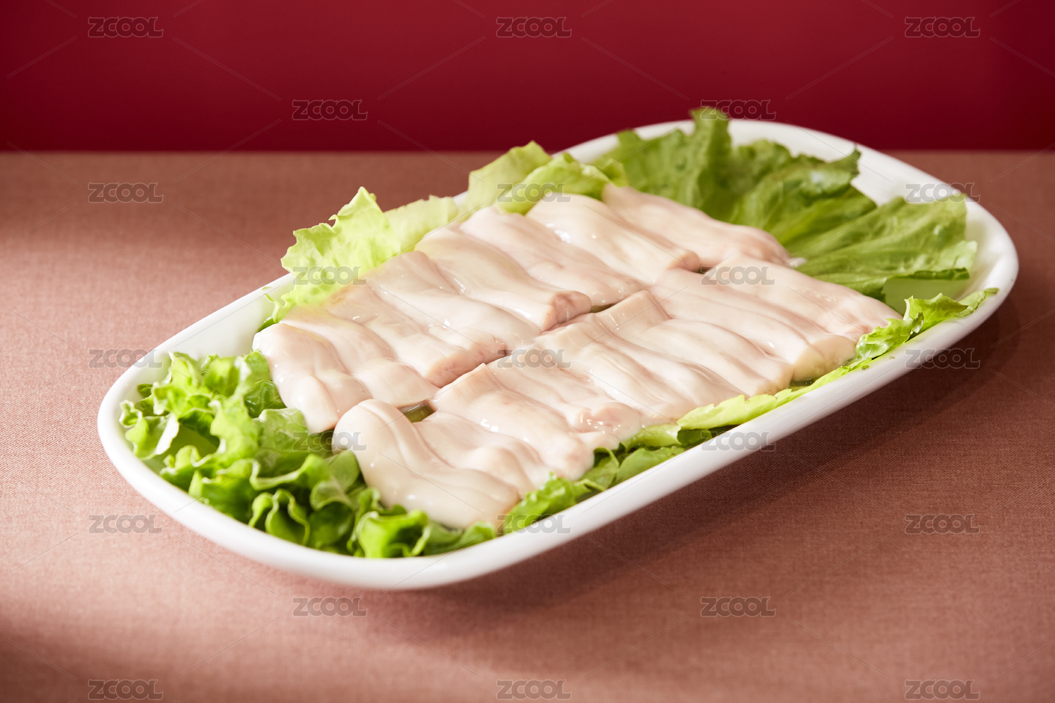 长方盘子里的火锅烧烤菜品鲜鱿鱼花