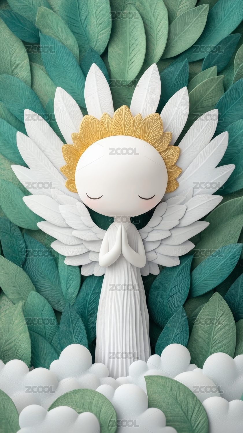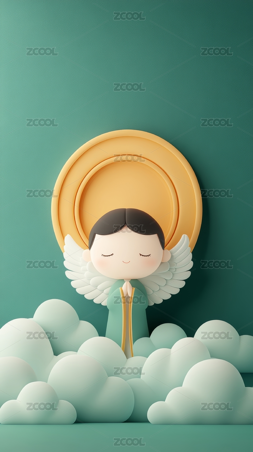 可爱,卡通,云朵,绿色,背景,3D渲染,毛绒玩具,橙色,太阳,帽子