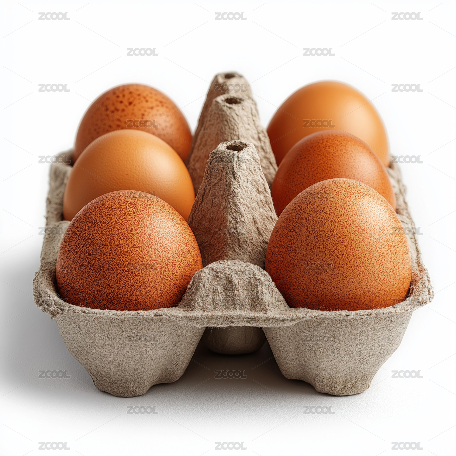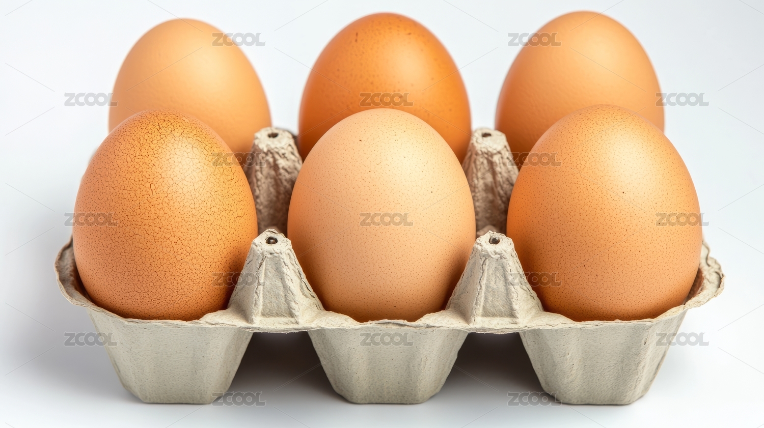 白色背景桌子上的纸箱里的鸡蛋高清图片