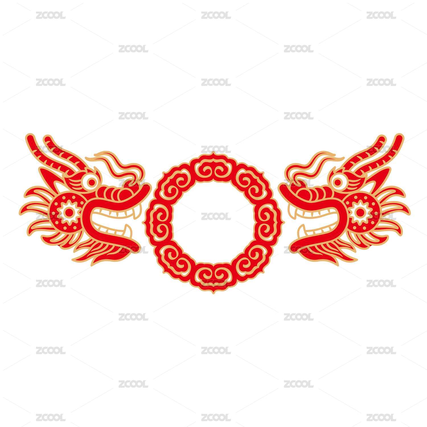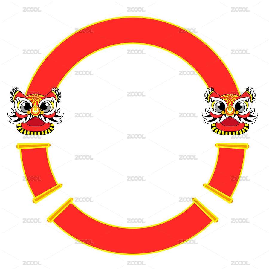 龙年矢量红色文本框灯笼醒狮国潮图案背景