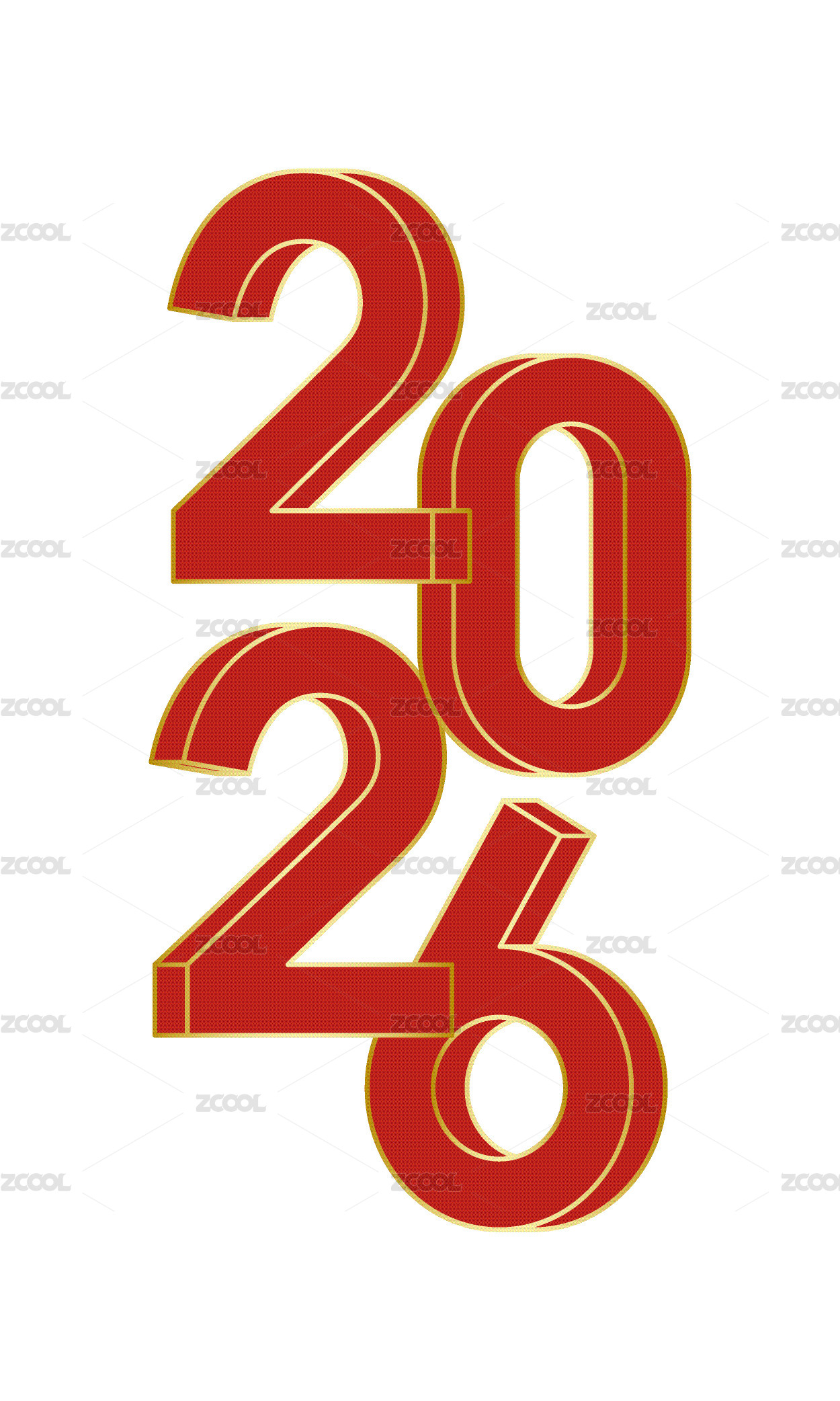 金色描边的红色立体数字2025