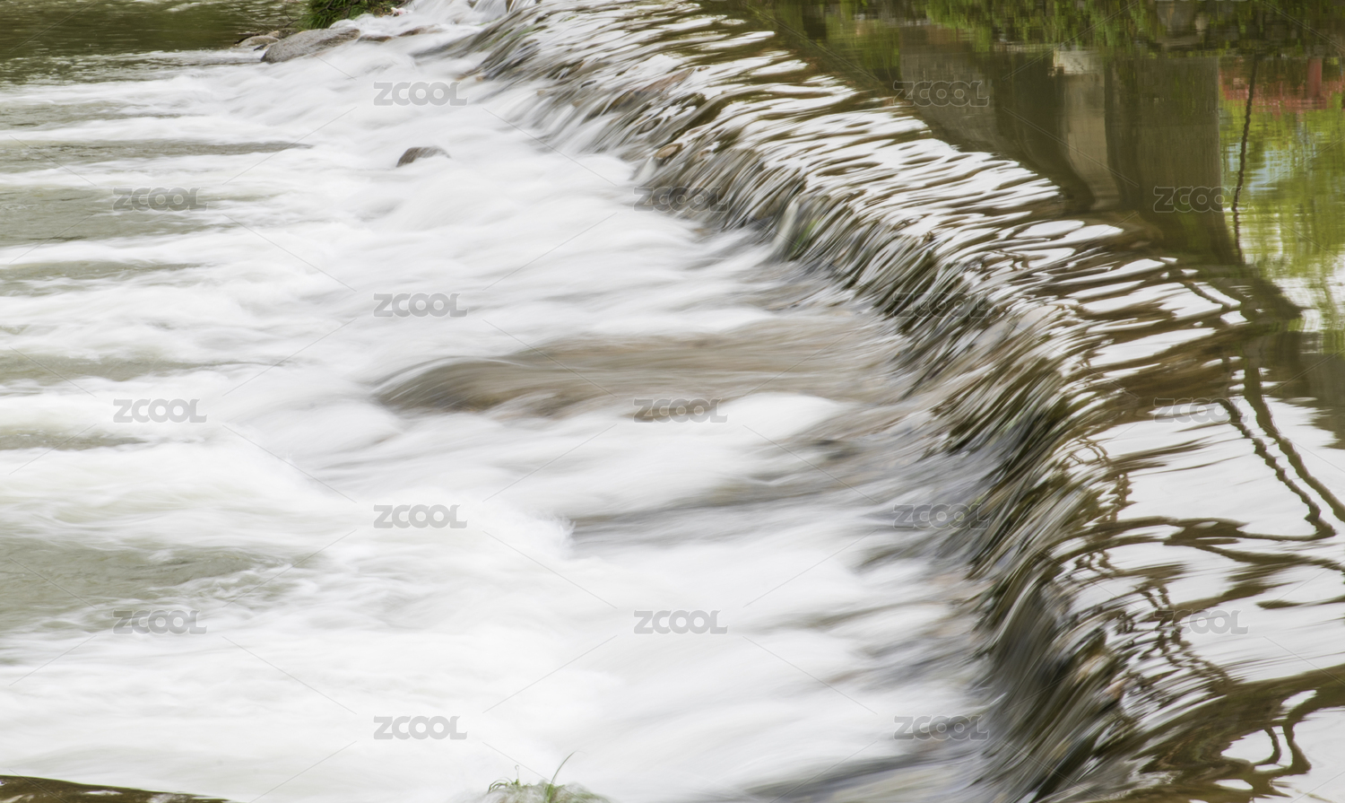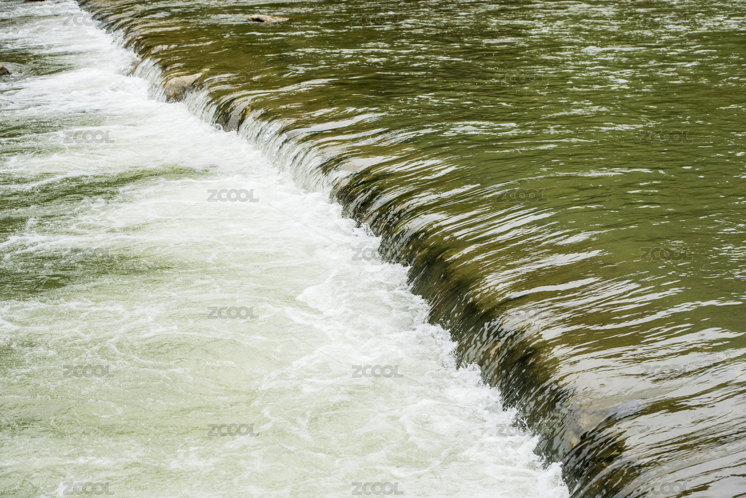 流经西宁市湟水河上的水坝前形成的水流瀑布