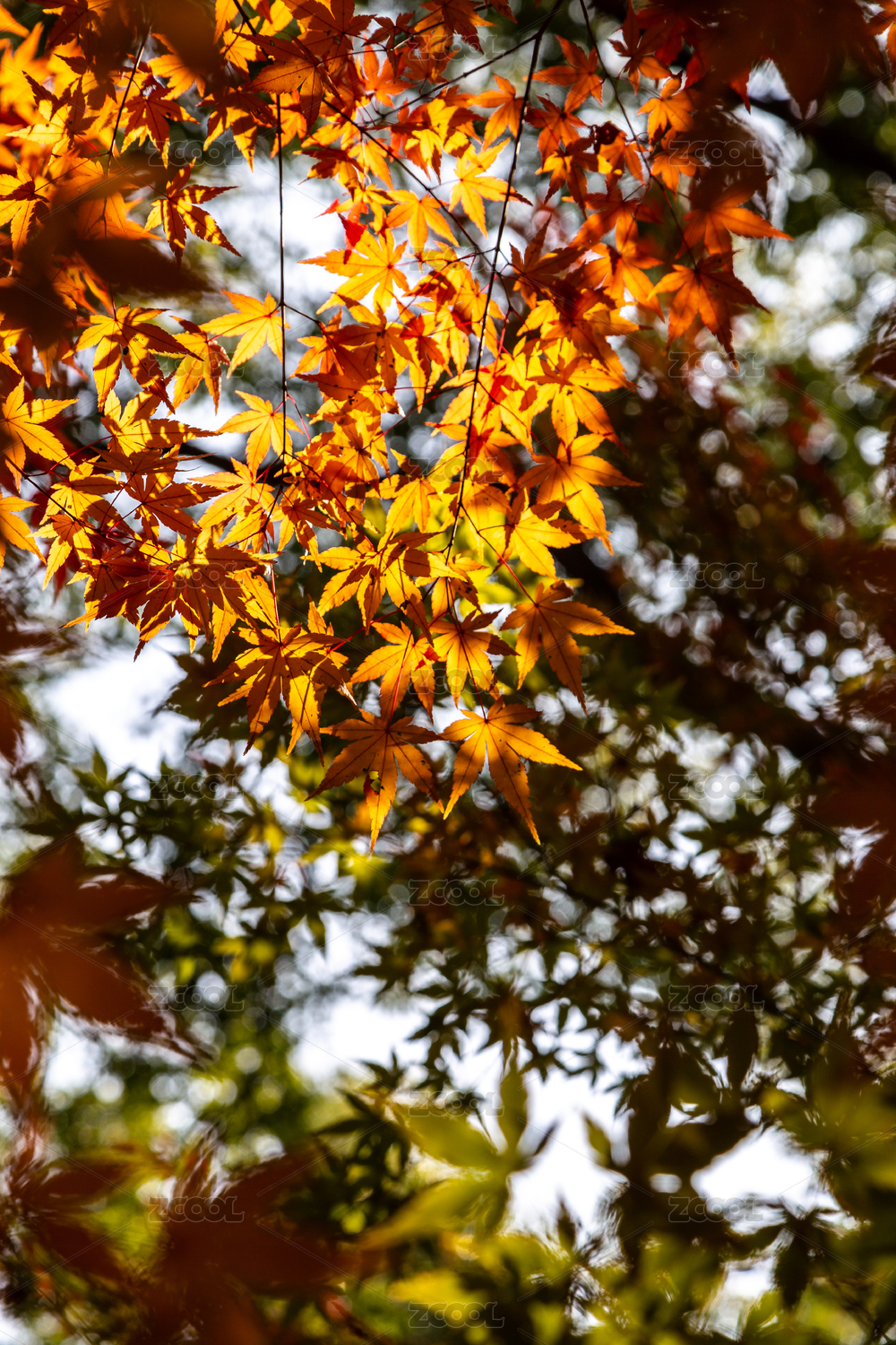 背景光斑虚化的枫叶