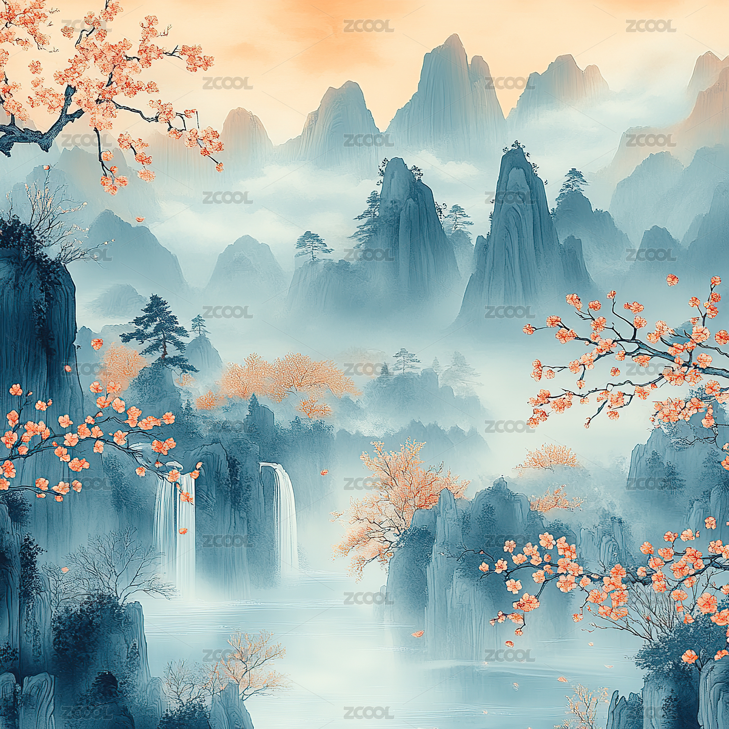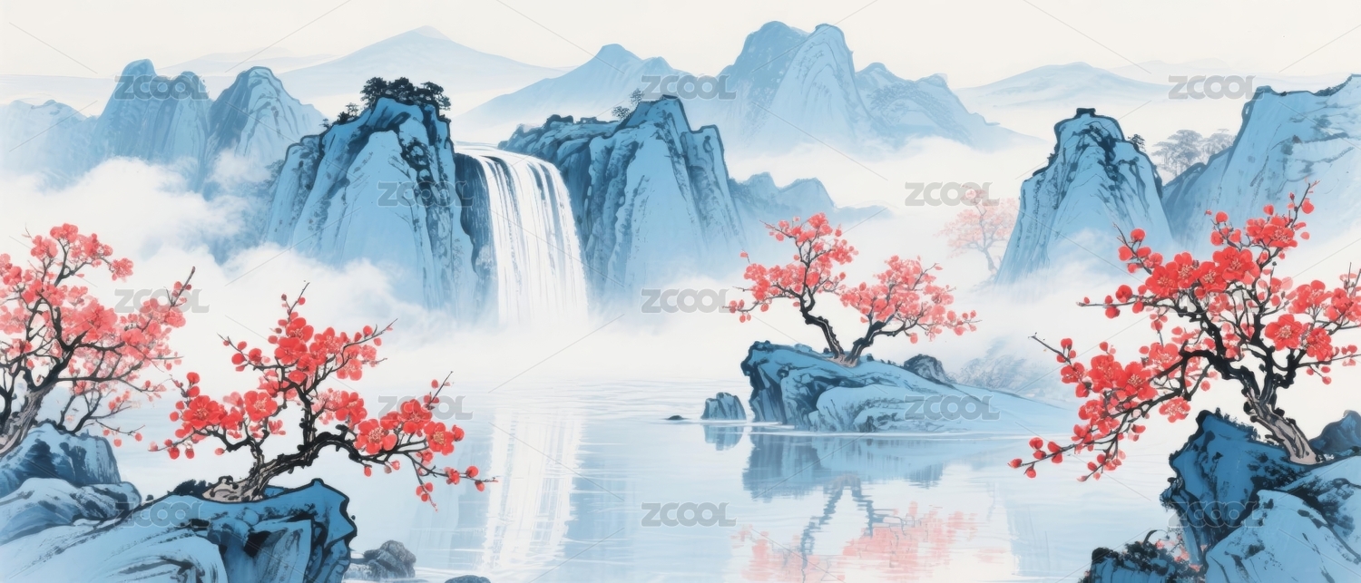 山水瀑布诗意国风背景