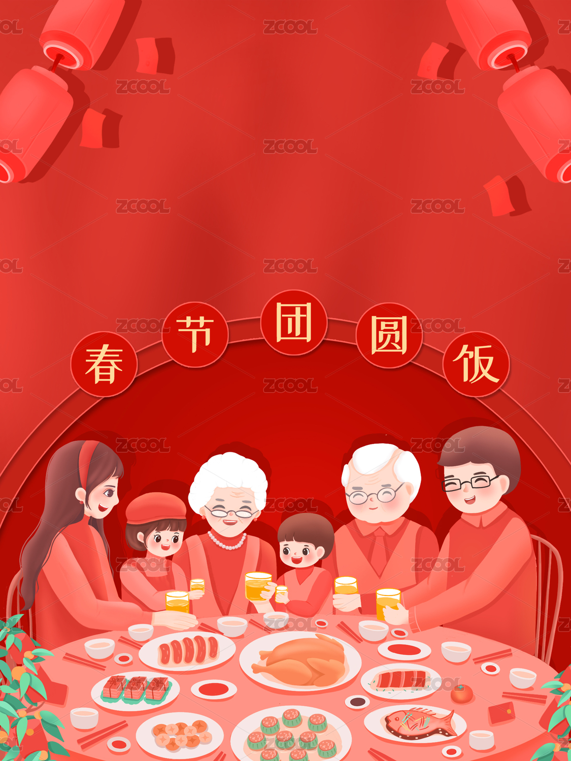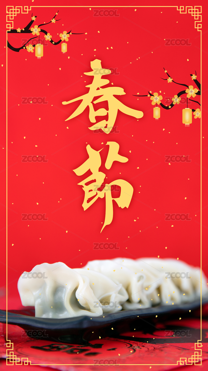 中国传统节日,春节,除夕,春节快乐,食物,年夜饭,饺子,热闹,喜庆,红色