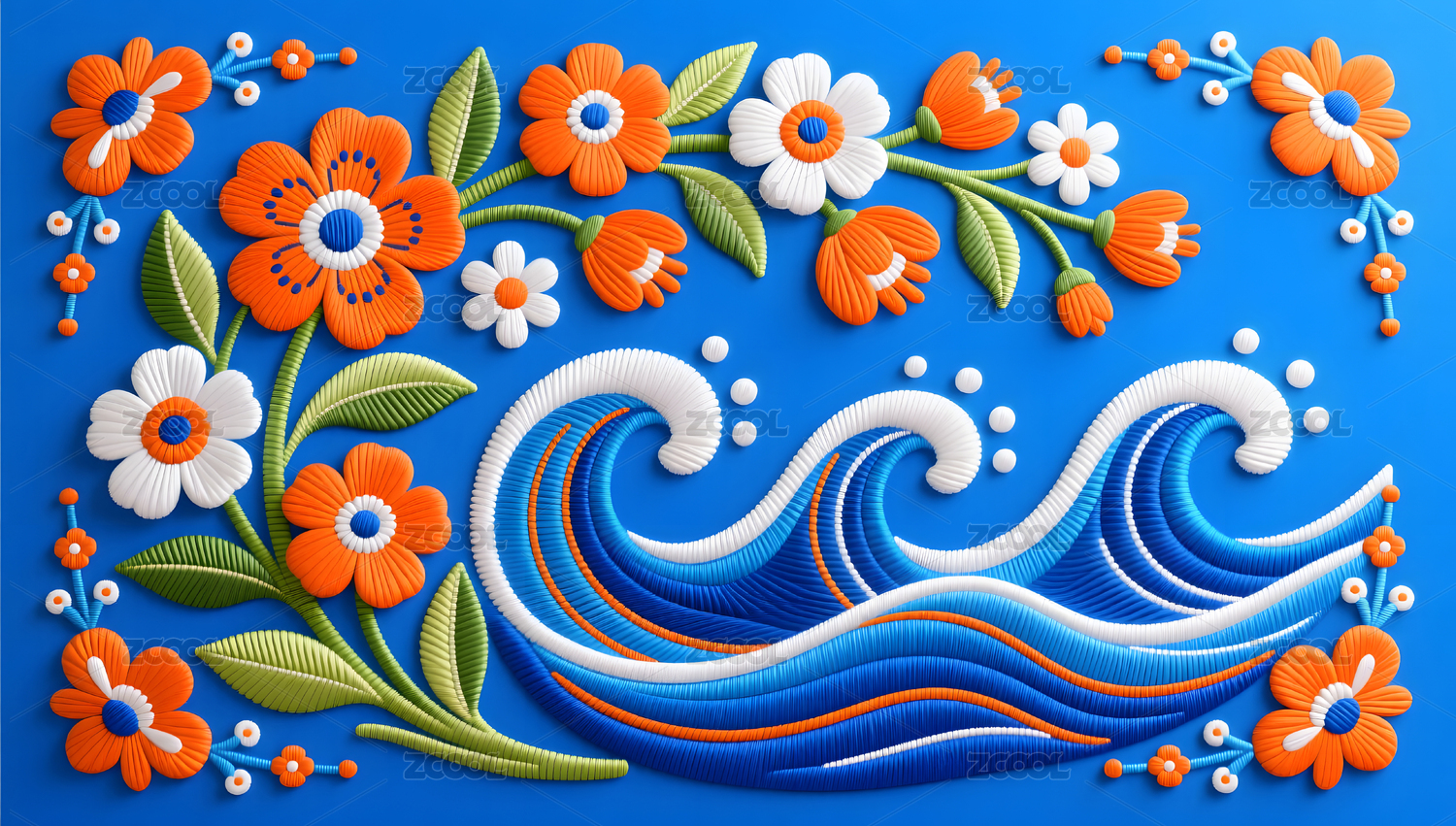 橙蓝纸艺花卉卷曲图案