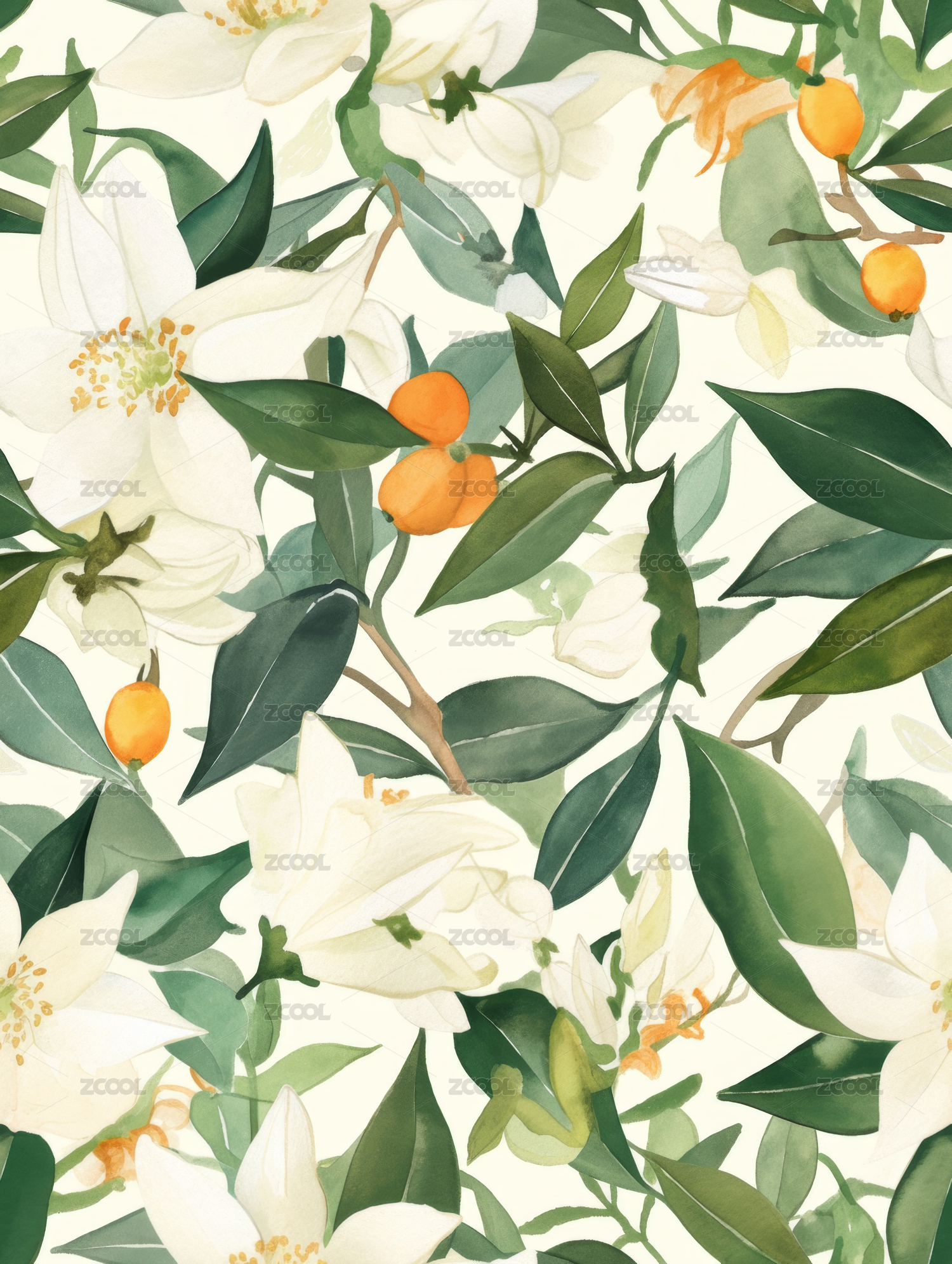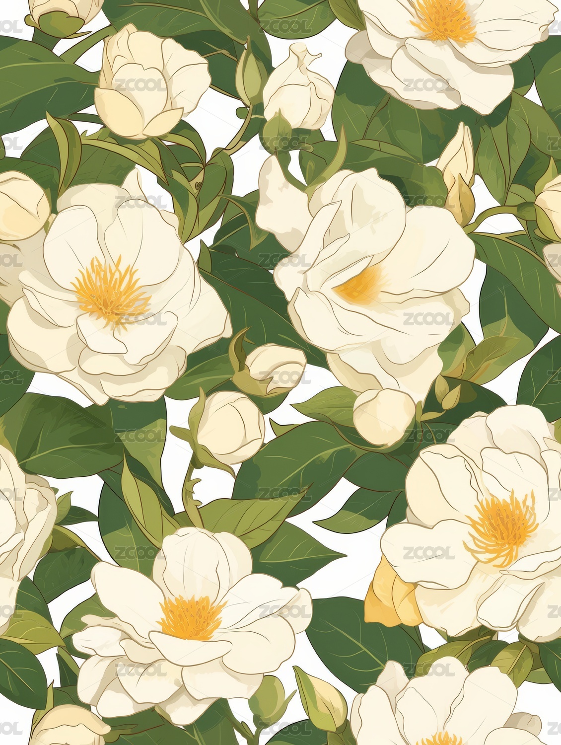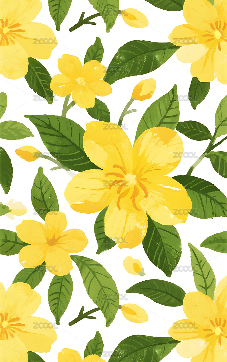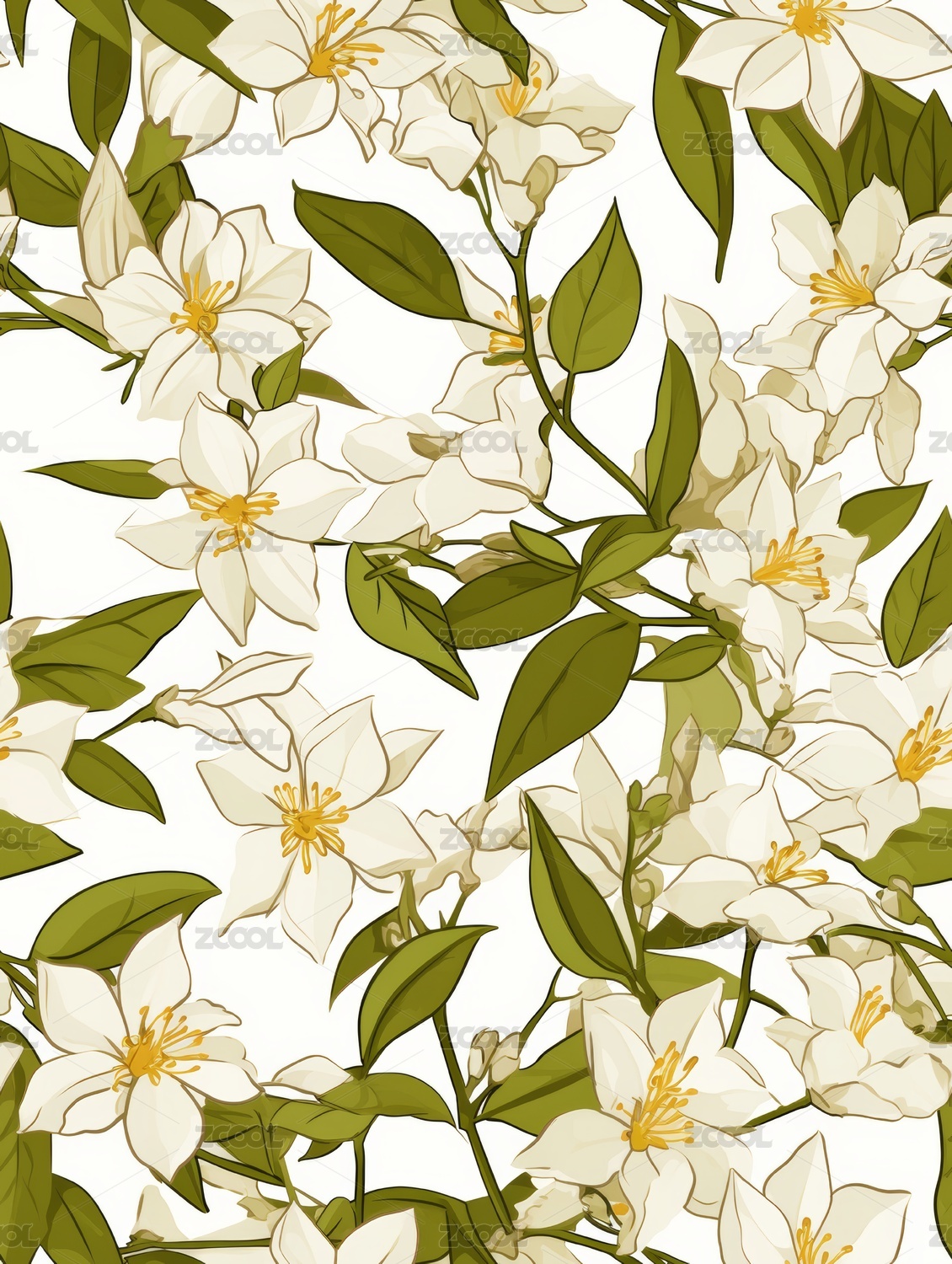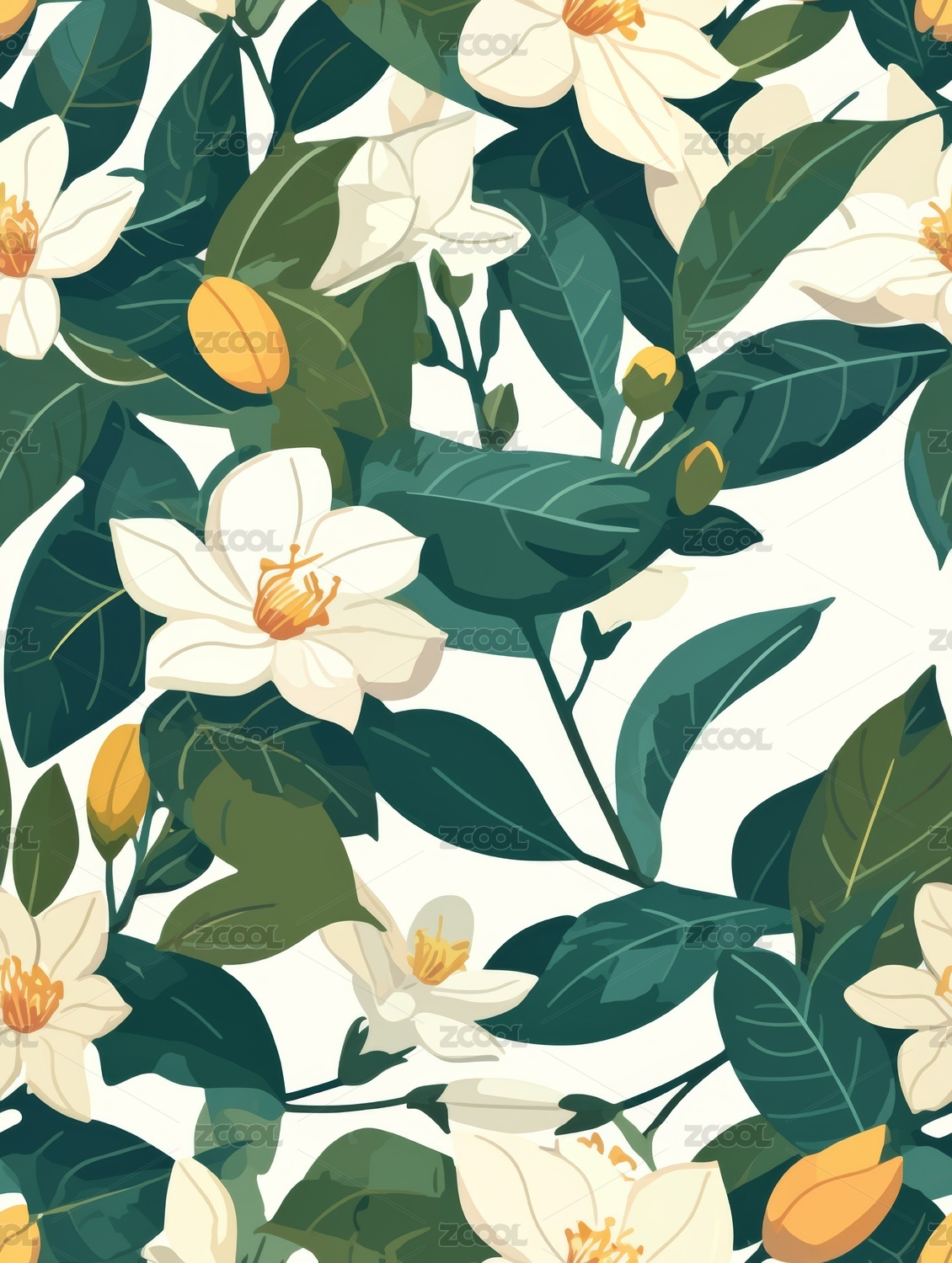 卡通图,图案,茉莉花,插画,背景,叶子,印花,壁纸