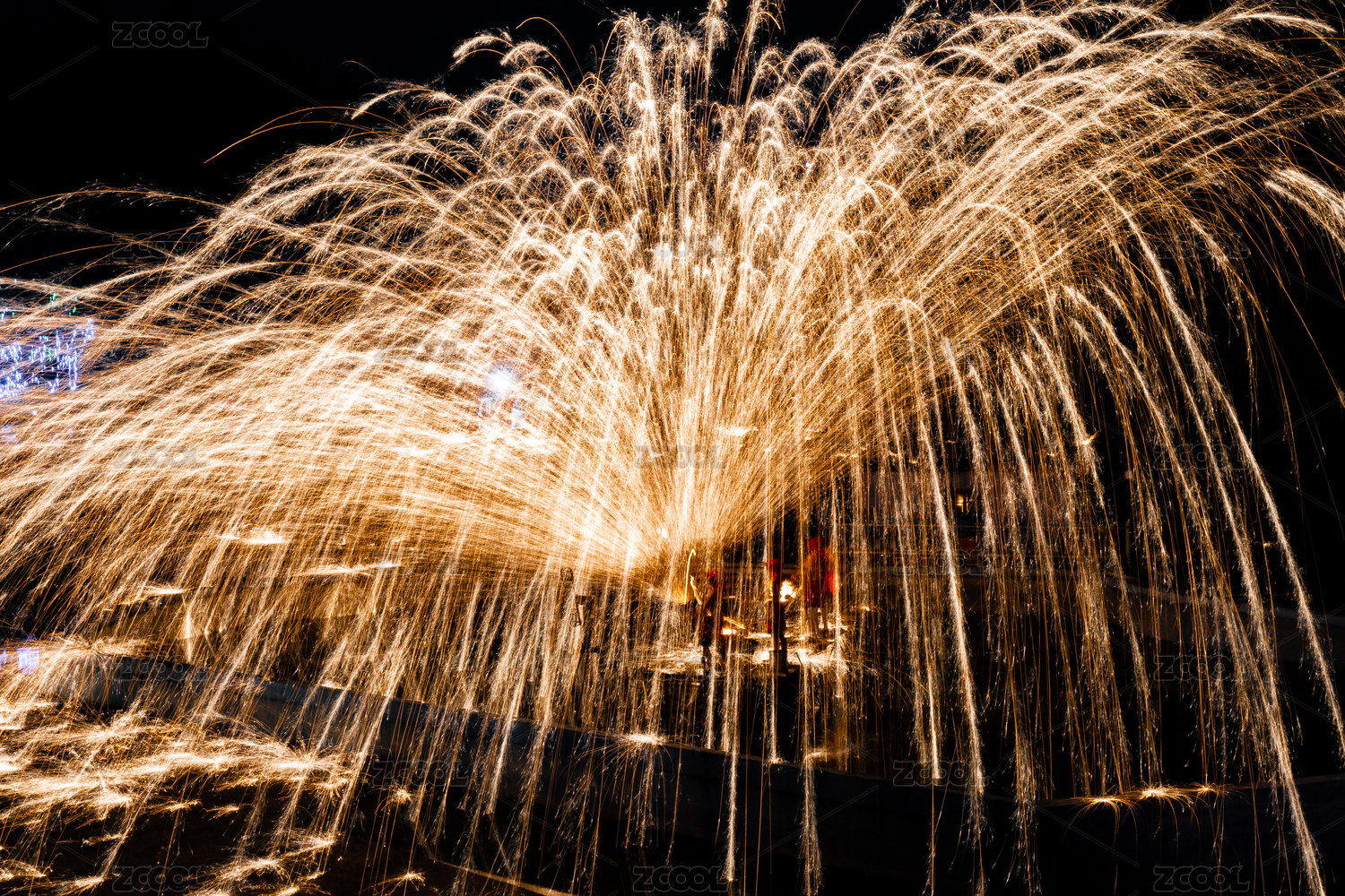 节日,元宵节,烧铁水,铁水花,舞龙,闹元宵,传统节日,夜晚,烧龙灯,中国