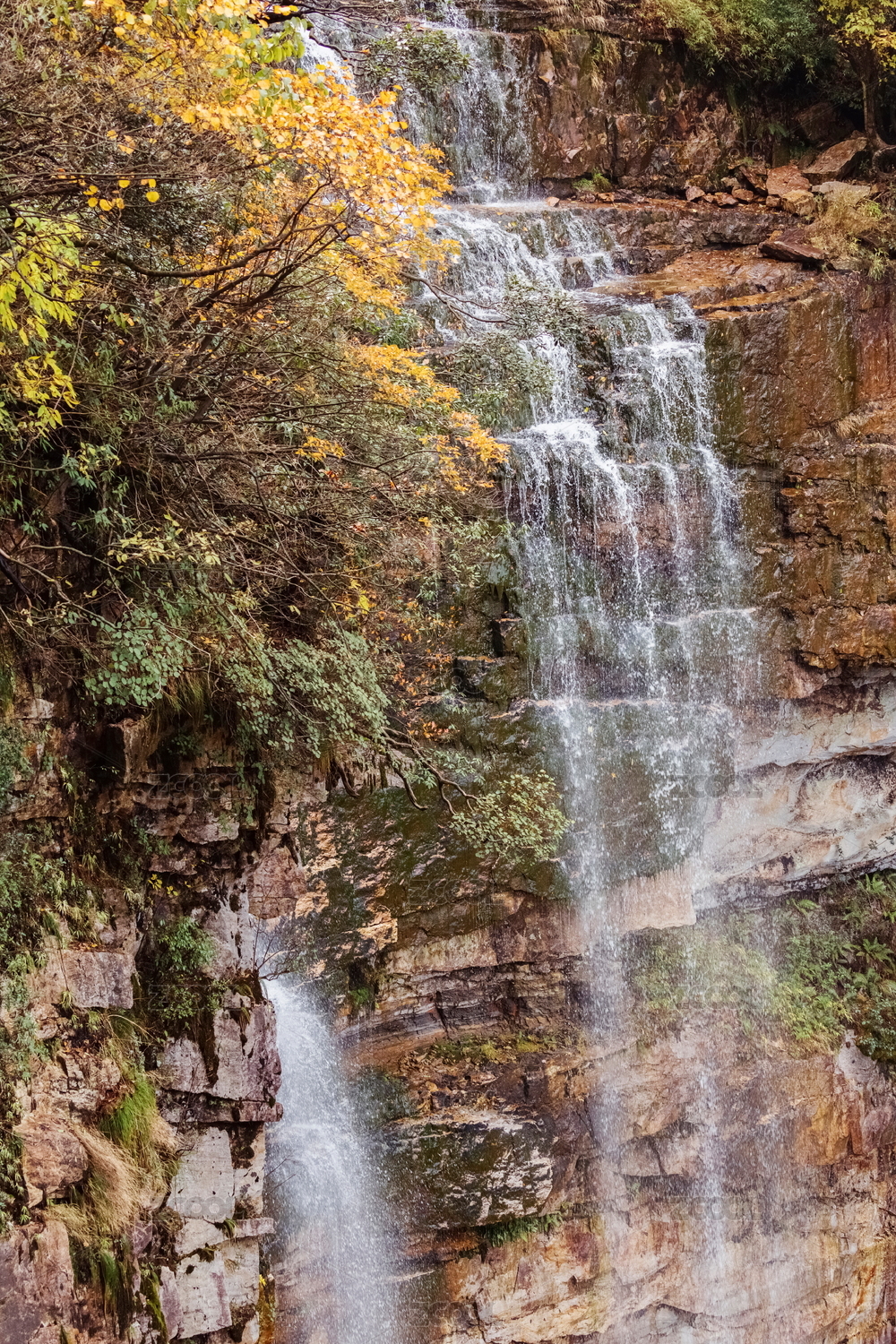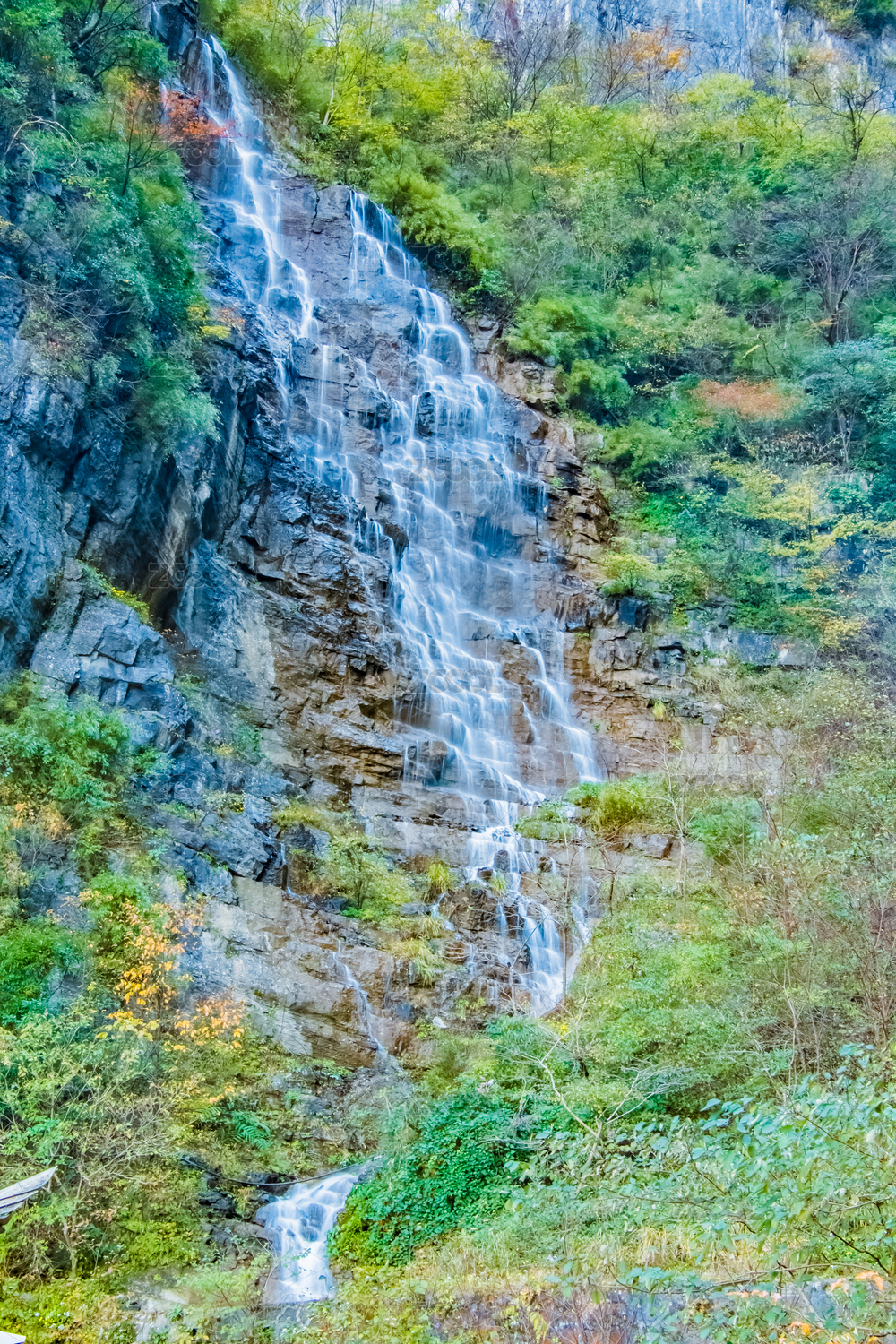 溪流,瀑布,慢速,森林,植被,岩石,秋色,秋天,小草坝,旅游
