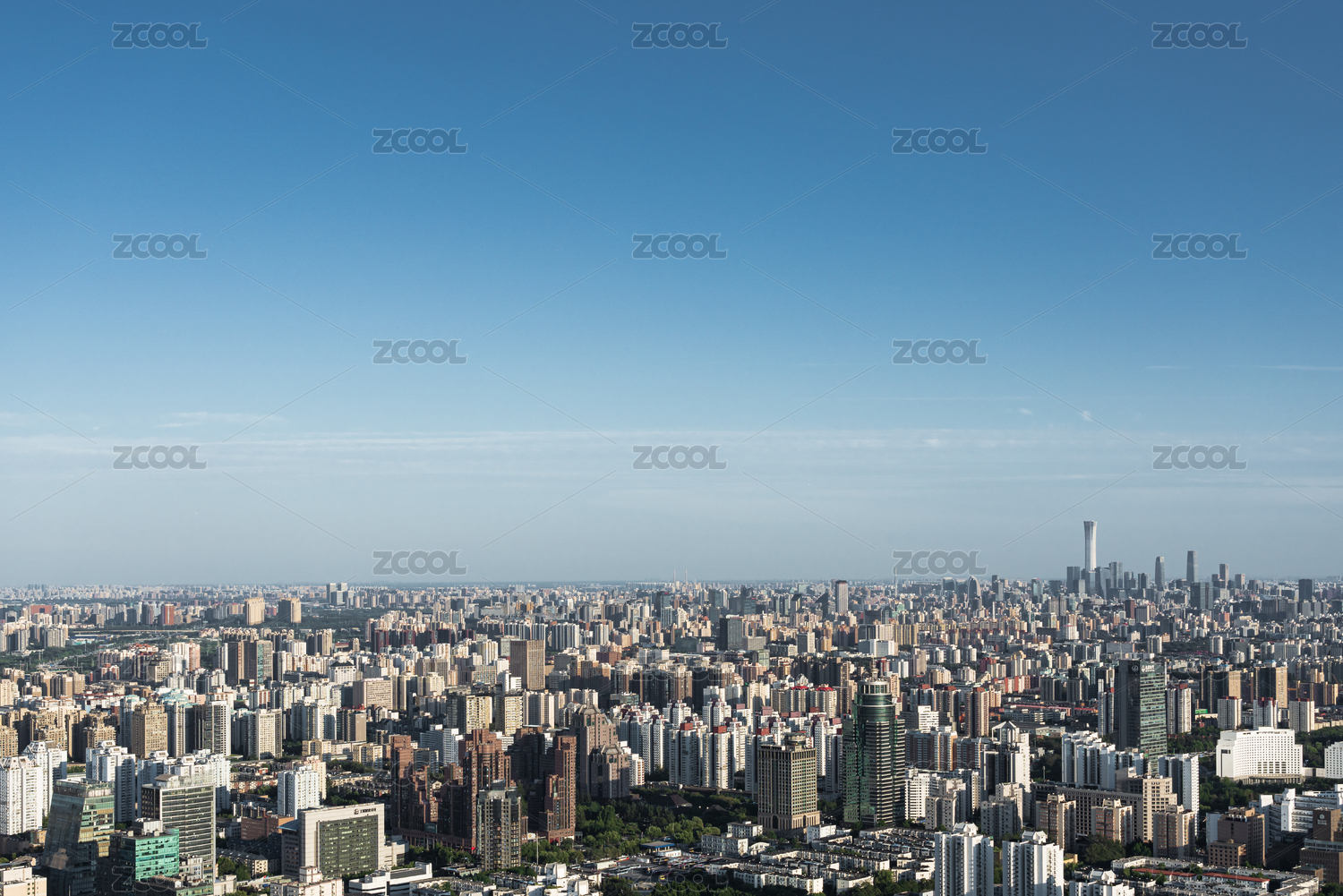 晴朗的下午鸟瞰北京城市天际线