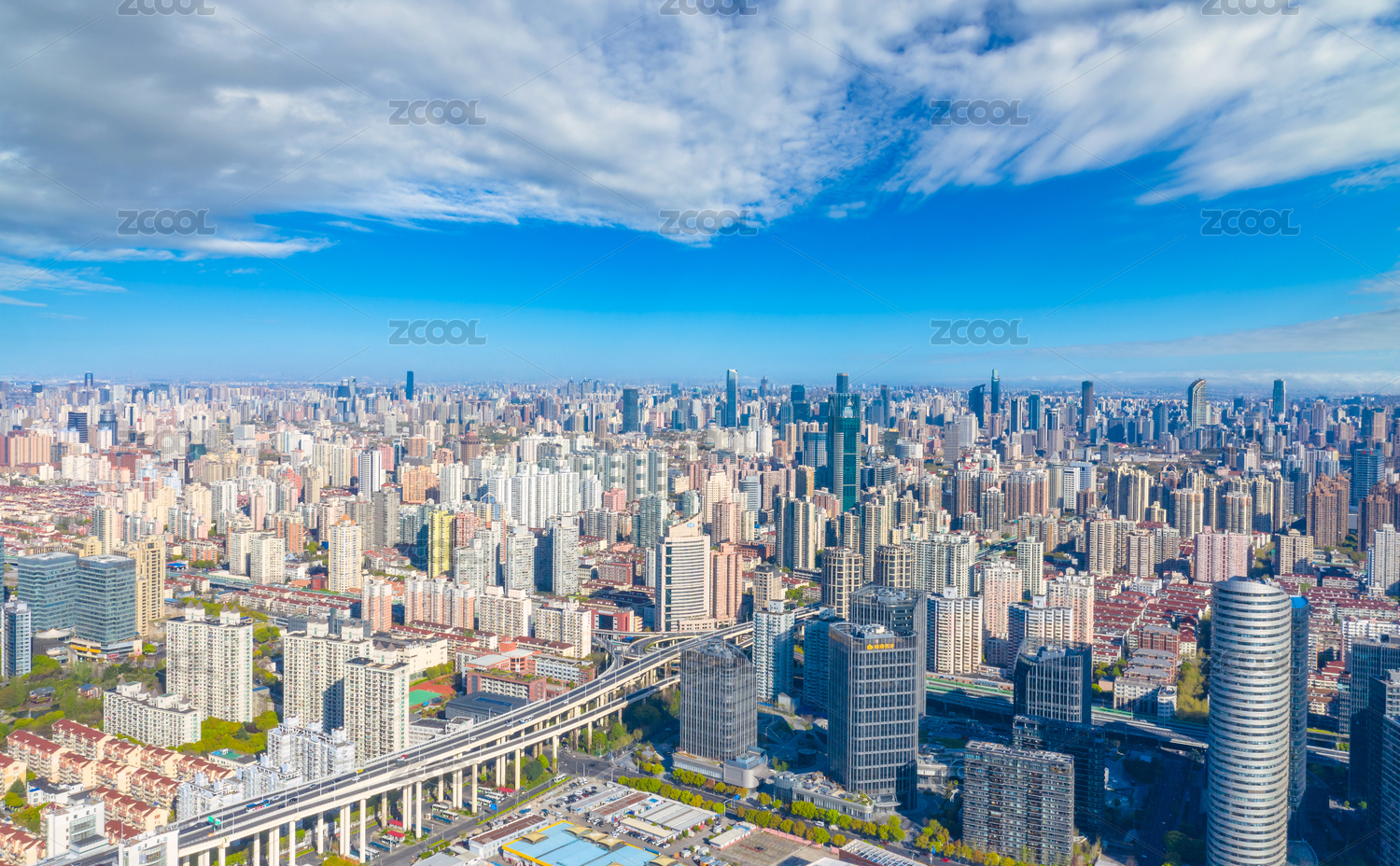 蓝天白云下的上海市中心