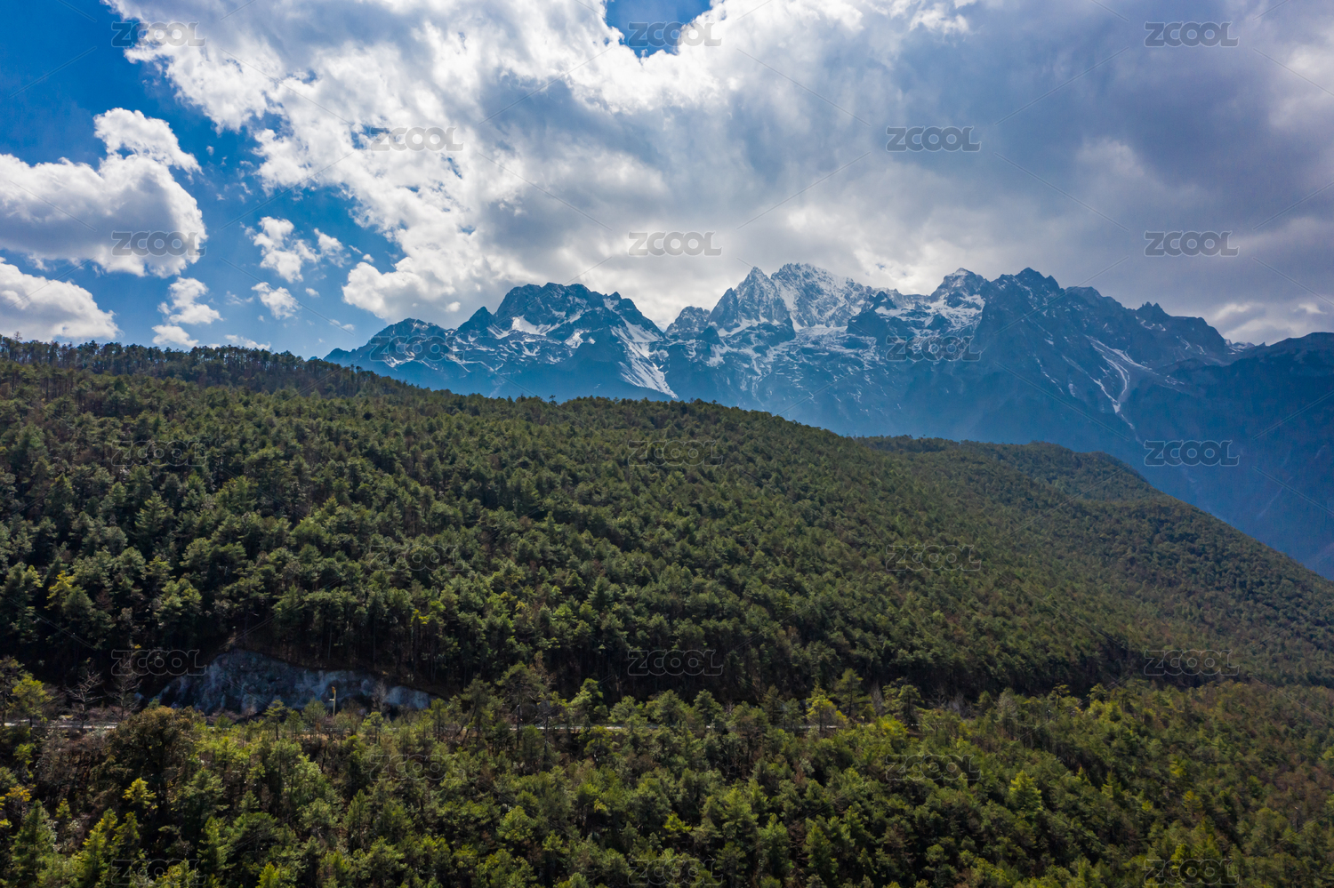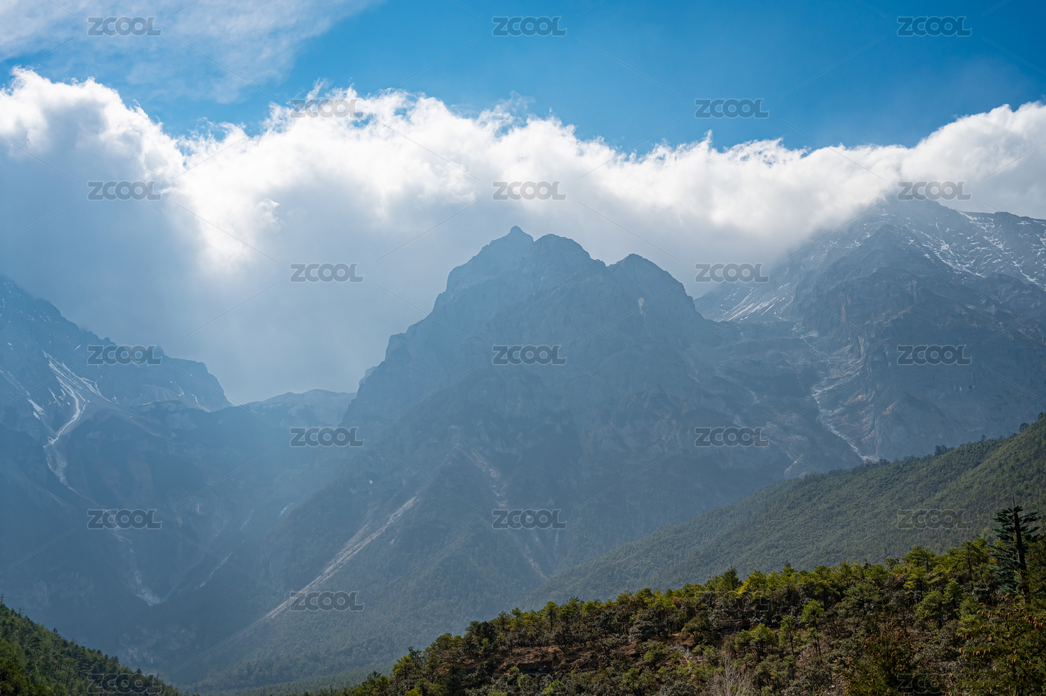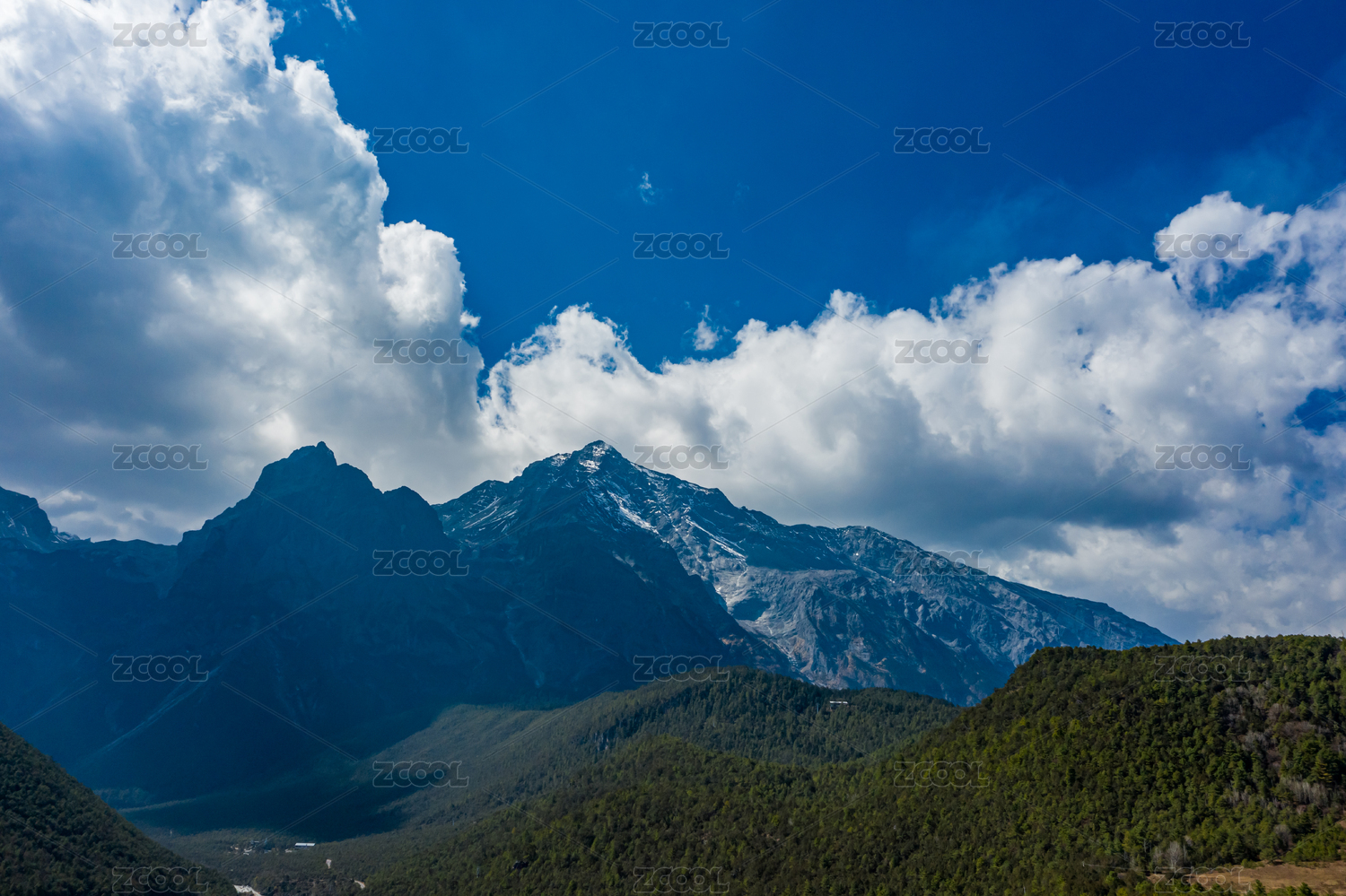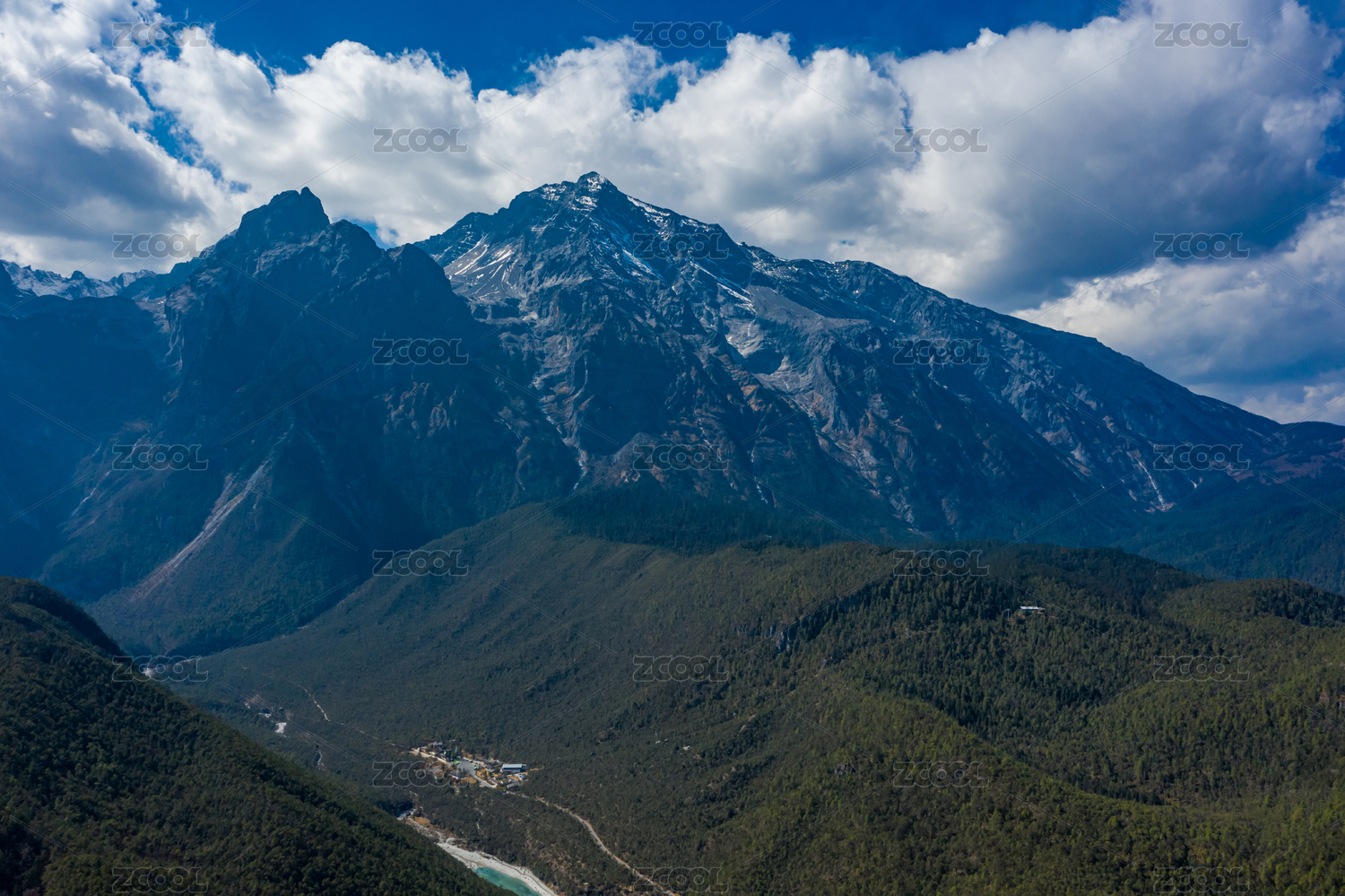 云南德钦雪山沟壑蓝天白云