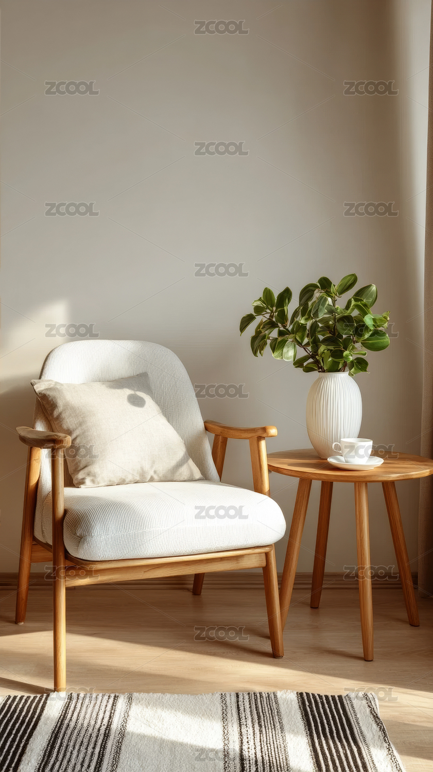 简约北欧风格客厅扶手椅与绿植