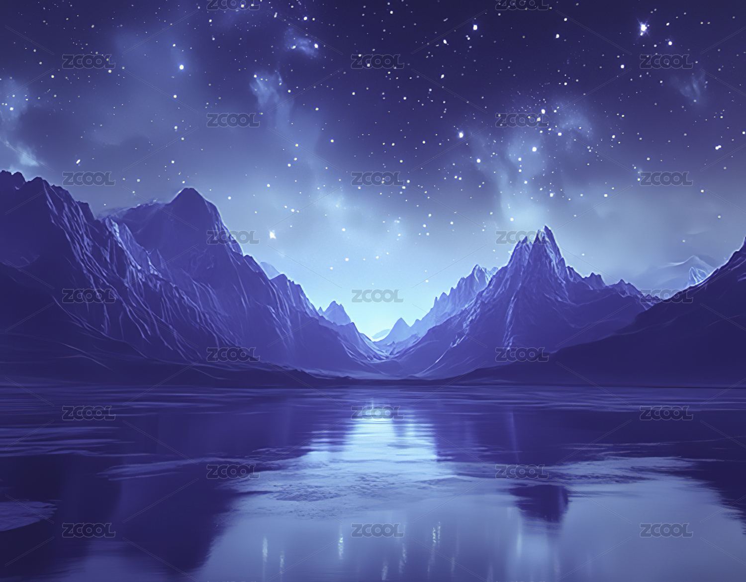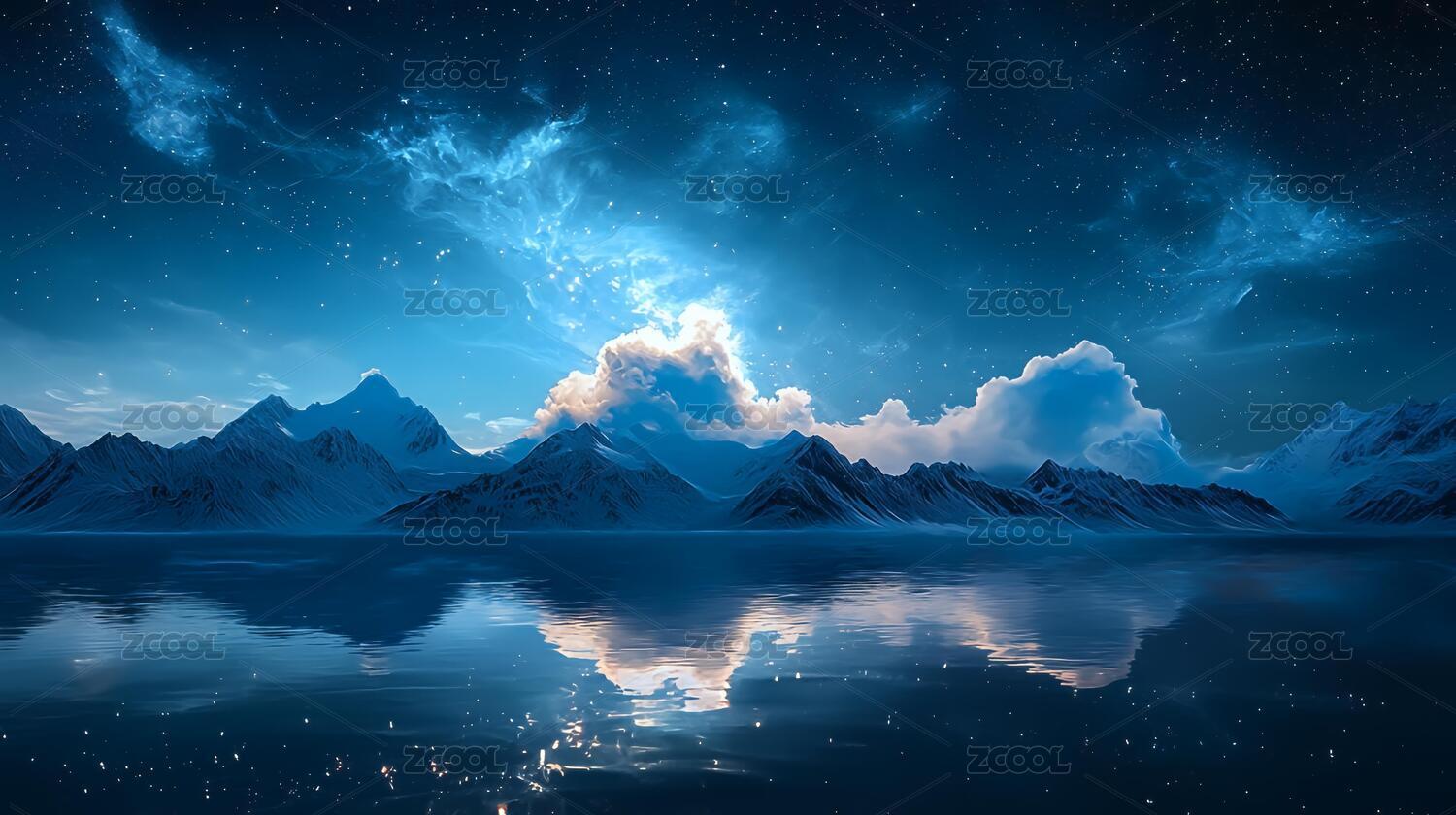 冰雪山脉星空倒影