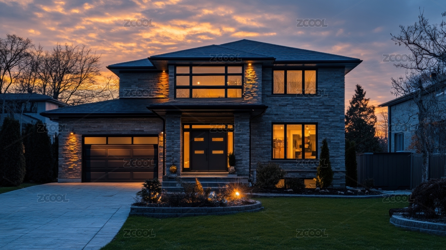 车库,门,钢材,深黑色,LED,灯,夜晚,时尚,住宅,简洁