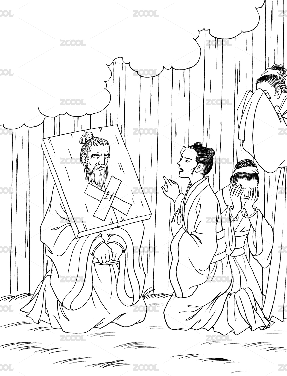 古风白描线稿 范滂和苏轼的母亲
