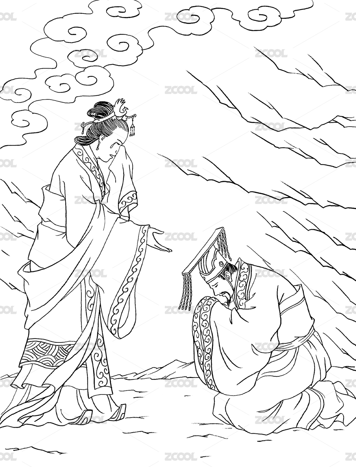 古风白描线稿 元规拒婚
