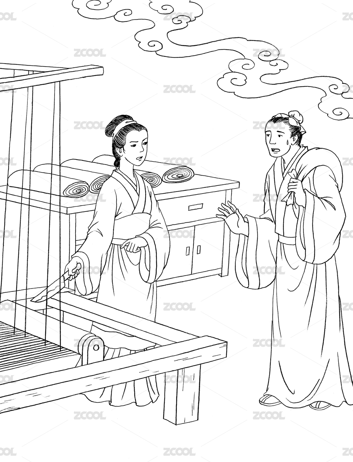 古风白描线稿 乐羊子妻