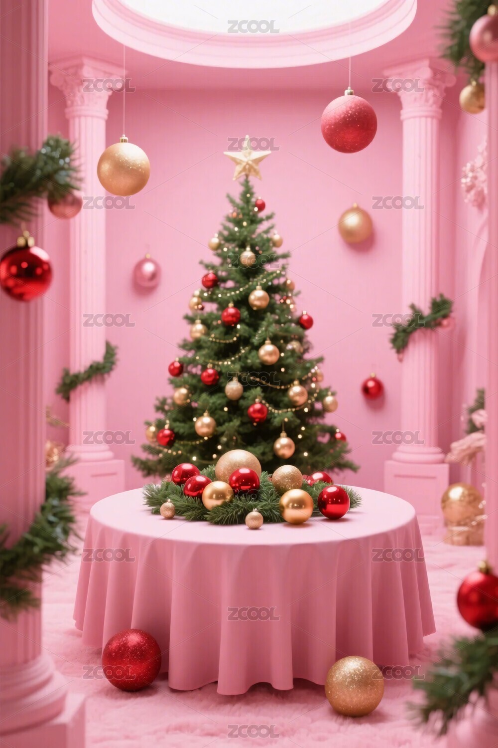 DXCZ202402,圣诞节,圣诞树,礼品盒,精致,3D,圣诞,圣诞球,温馨,深色背景
