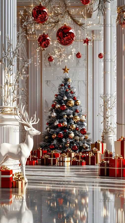 圣诞节超精致麋鹿礼盒圣诞树温馨插画场景