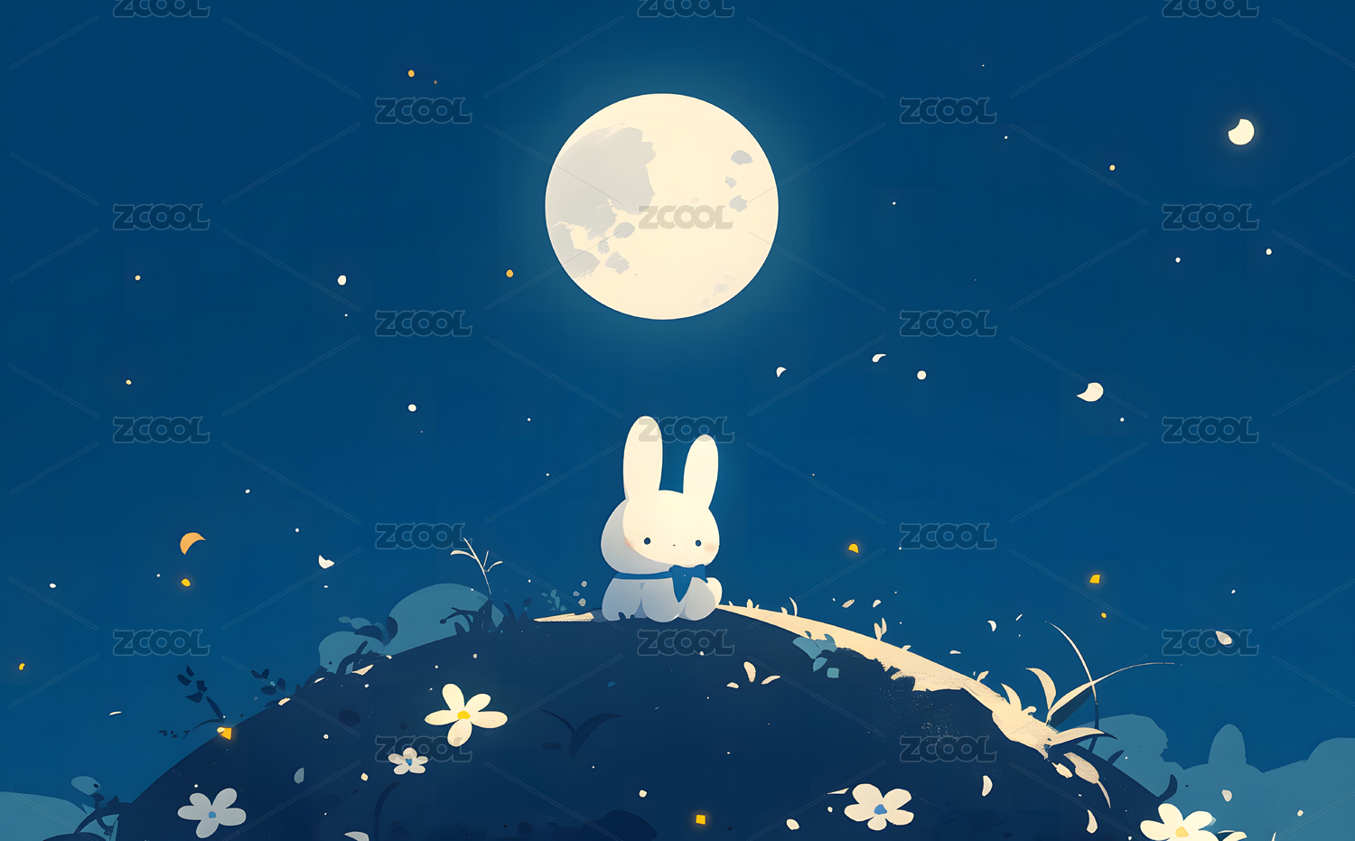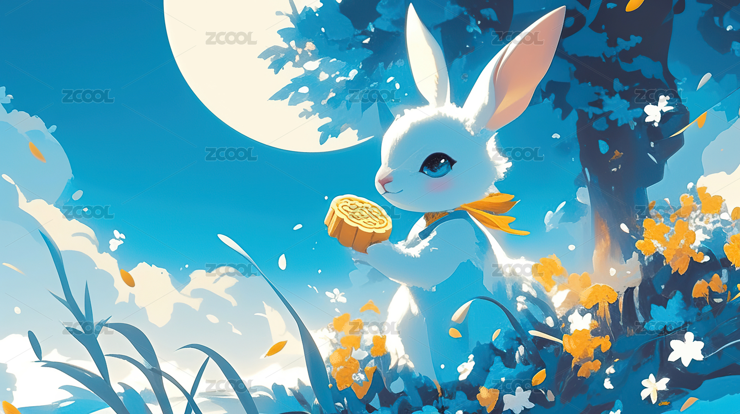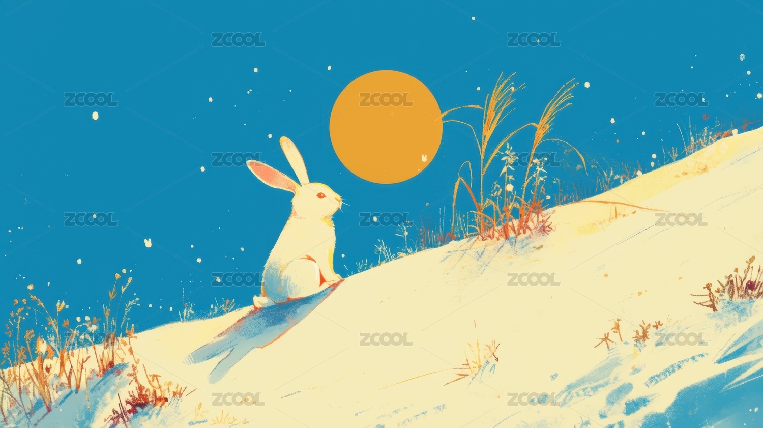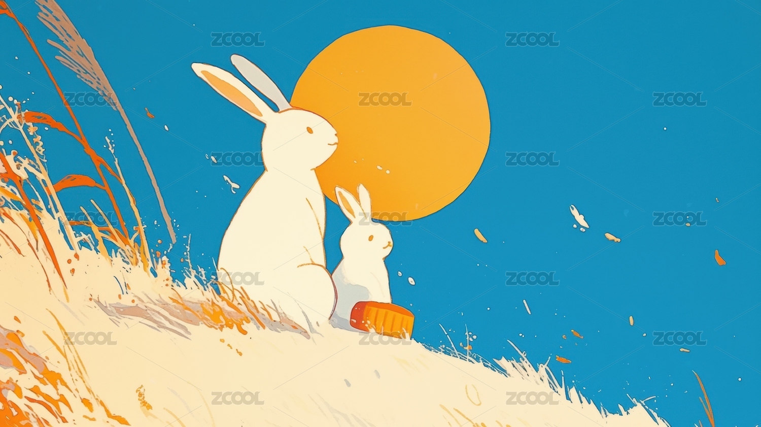 AIGC202403,玉兔,兔子,中秋,节日,插画,背景,圆月,设计