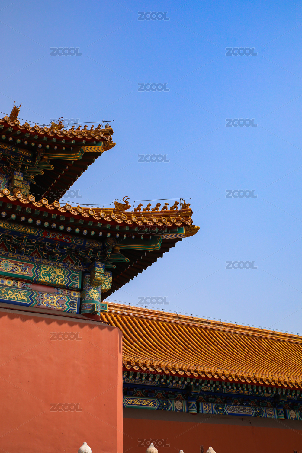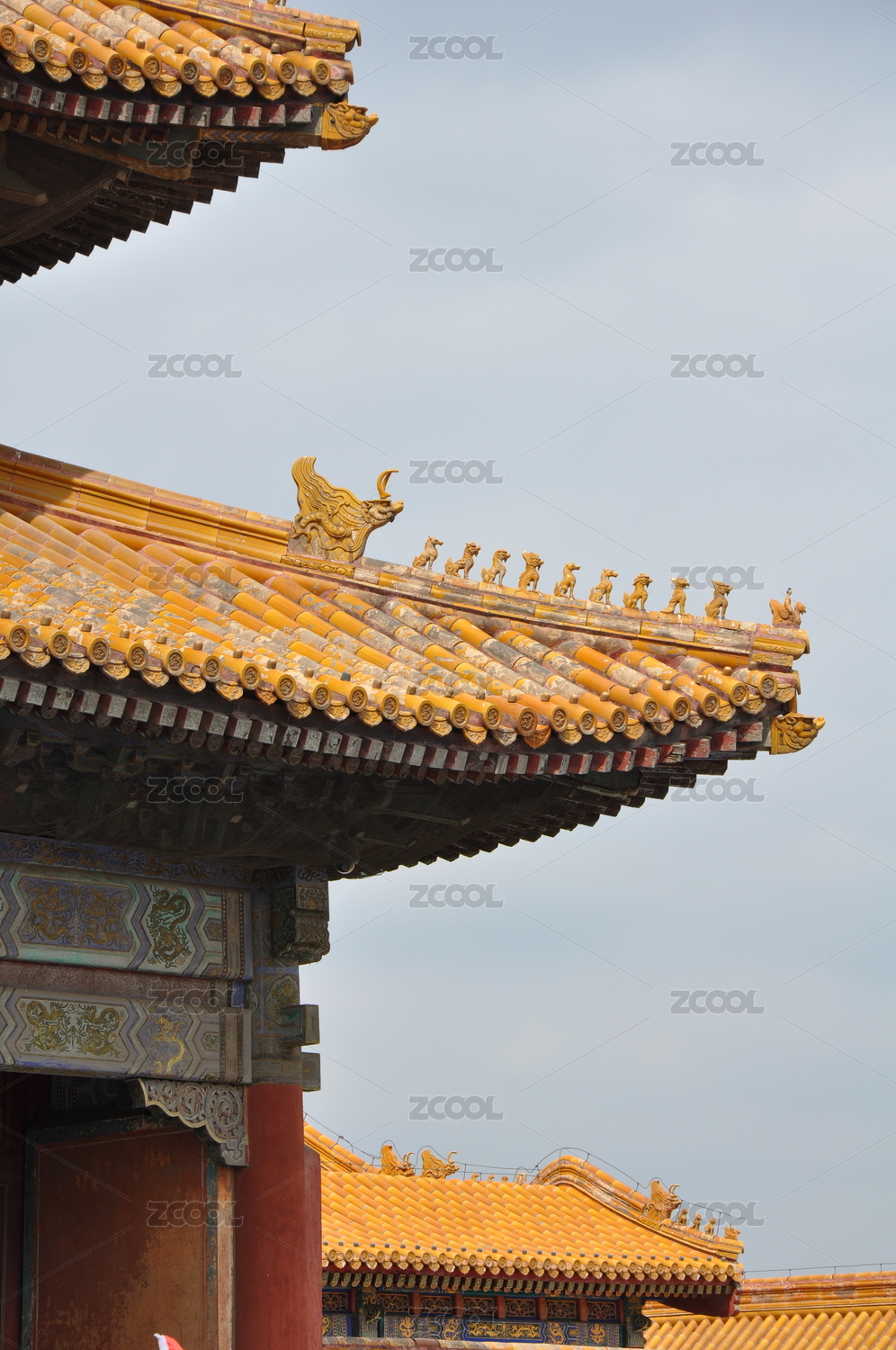中国北京故宫东方古代建筑屋檐上的脊兽