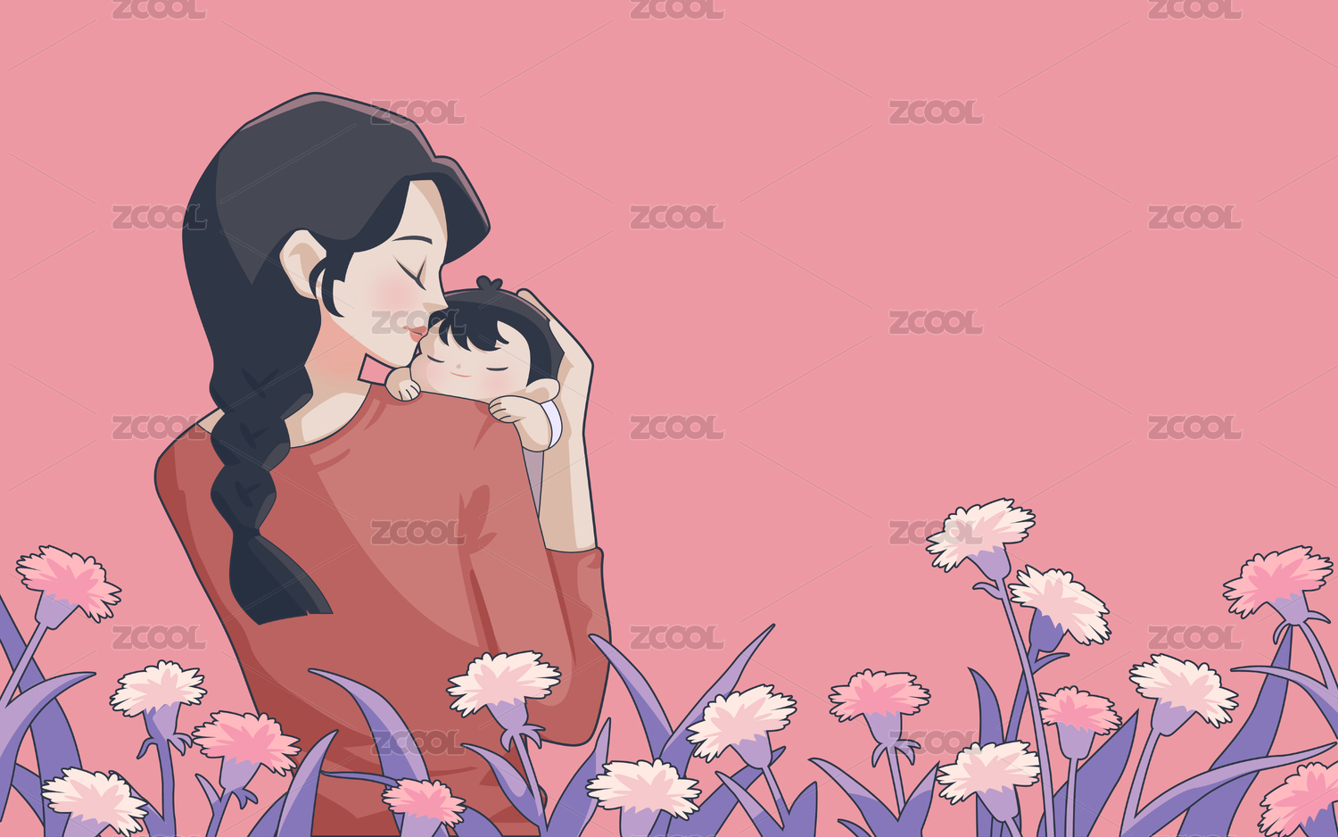 母亲节妈妈抱着婴儿萌宝插画矢量图
