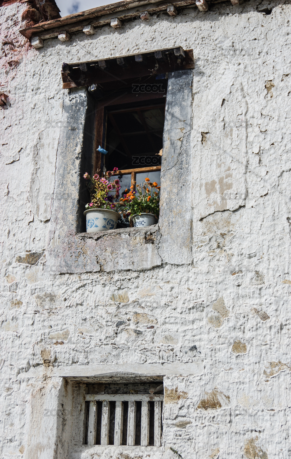 古朴的窗台土陶罐里种盆栽一棵吊兰