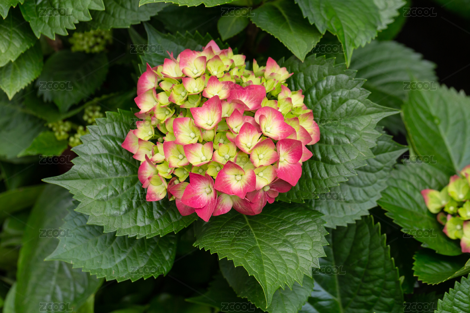粉色红色绣球花