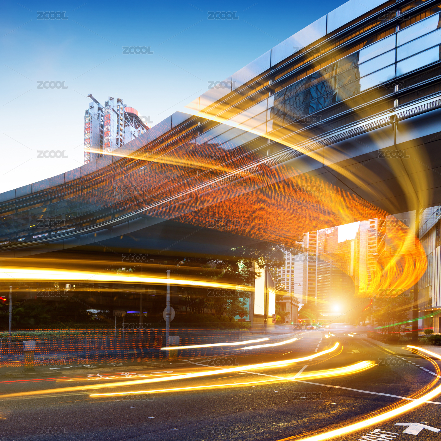 香港夜景,飞驰的汽车尾灯形成的光的轨迹