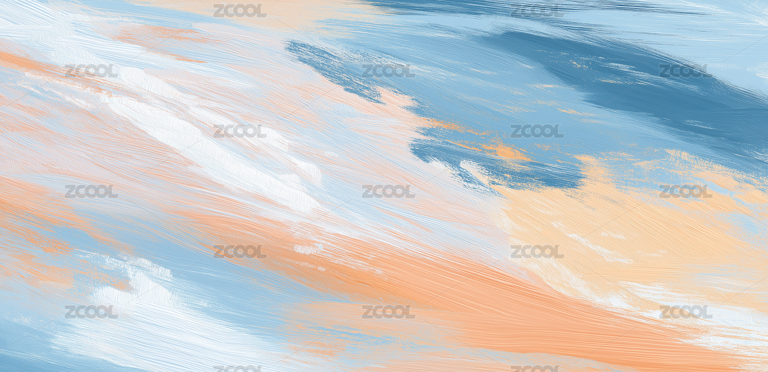 蓝橙白颜料笔触交织呈现清新艺术的抽象质感
