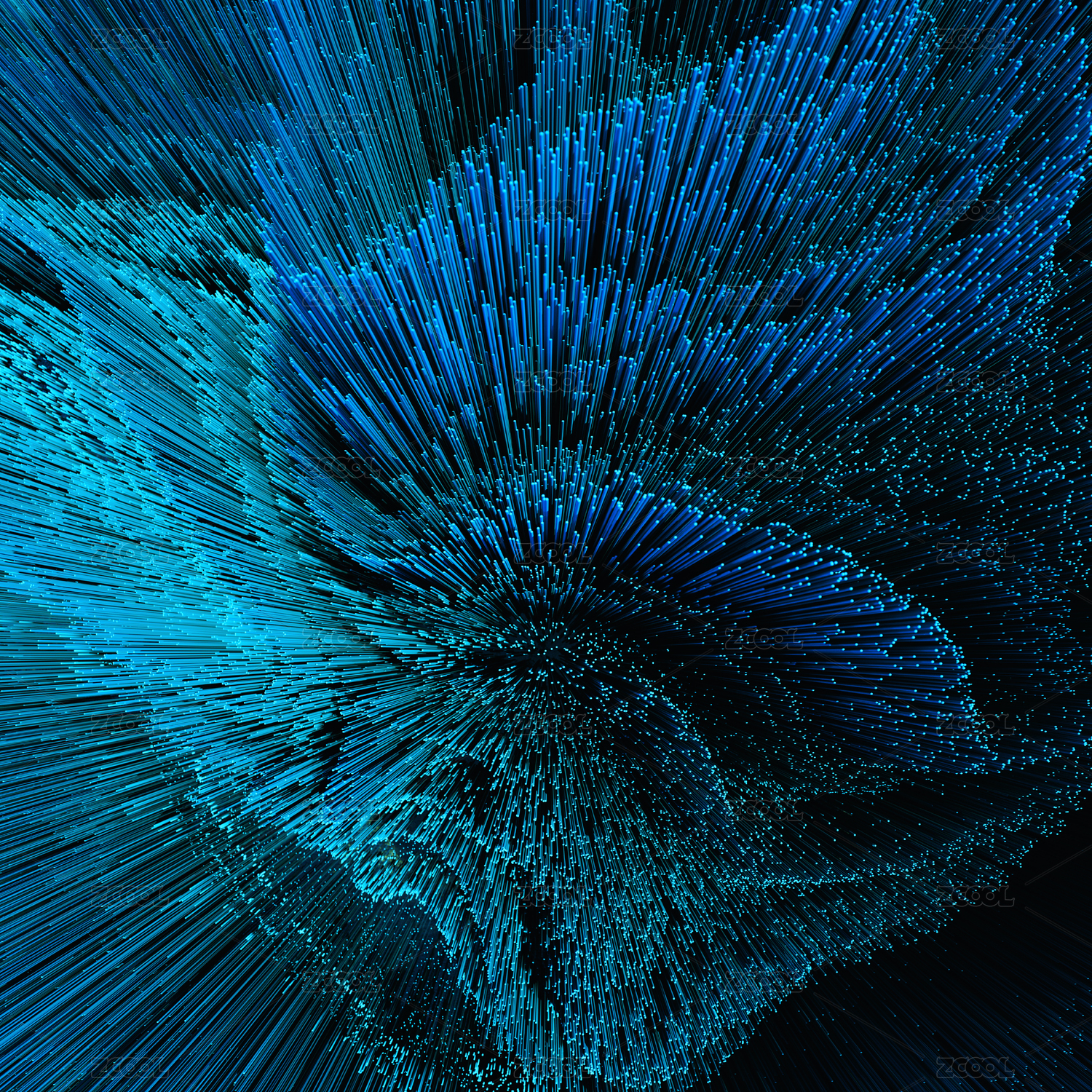 旋涡状旋转的蓝白相间粒子 三维渲染