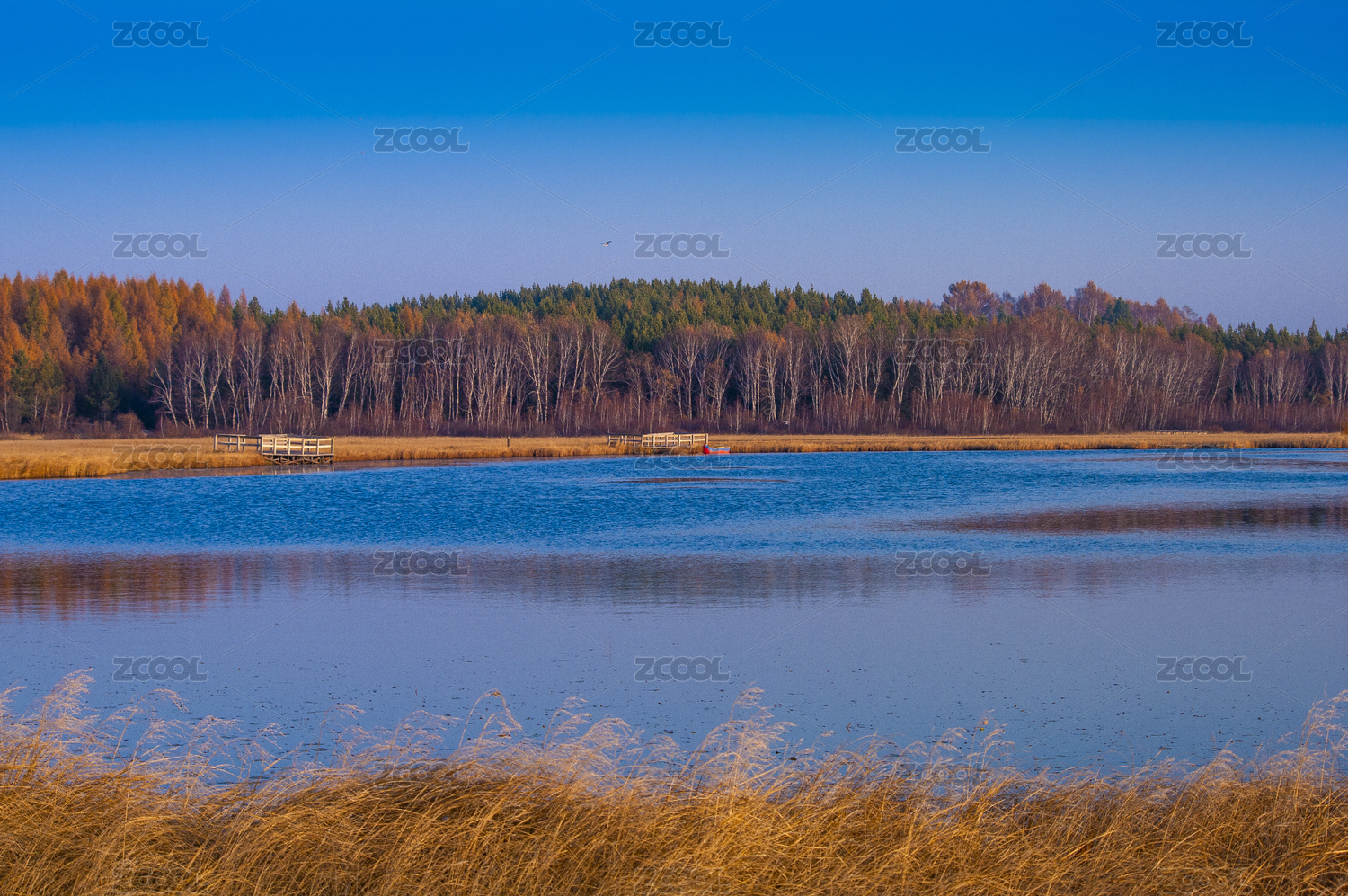 河北围场县塞罕坝森林公园内的七星湖草原湿地秋色