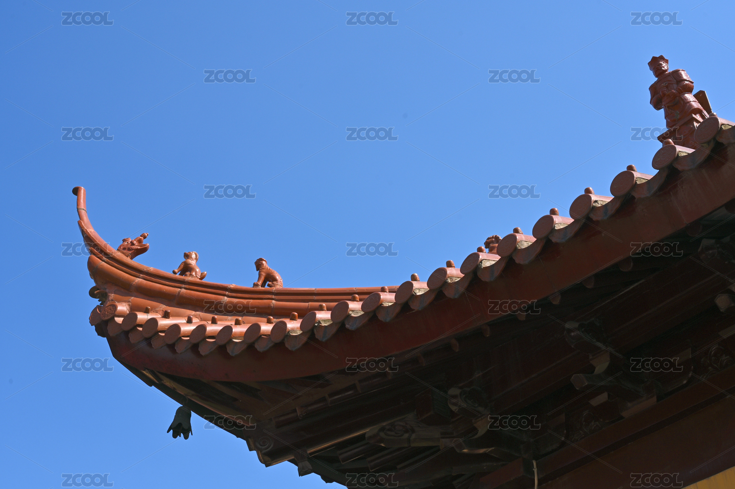 中国古寺庙建筑屋角飞檐琉璃瓦特写