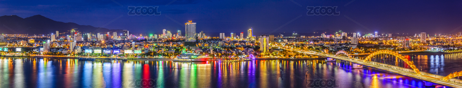 中国福建省福州市城区高楼建筑夜景灯光环境景观