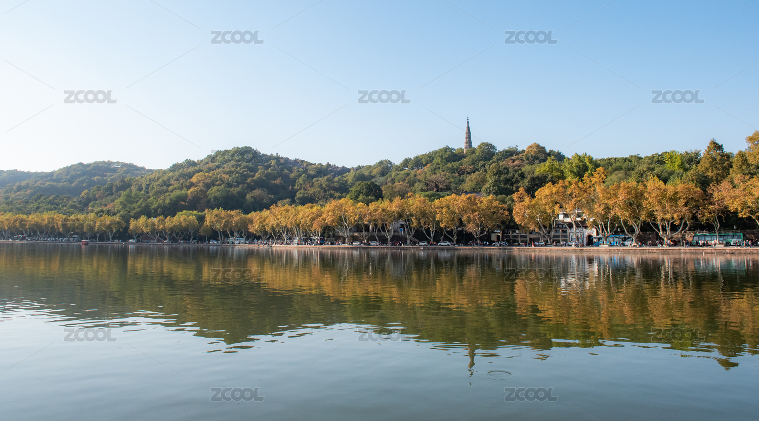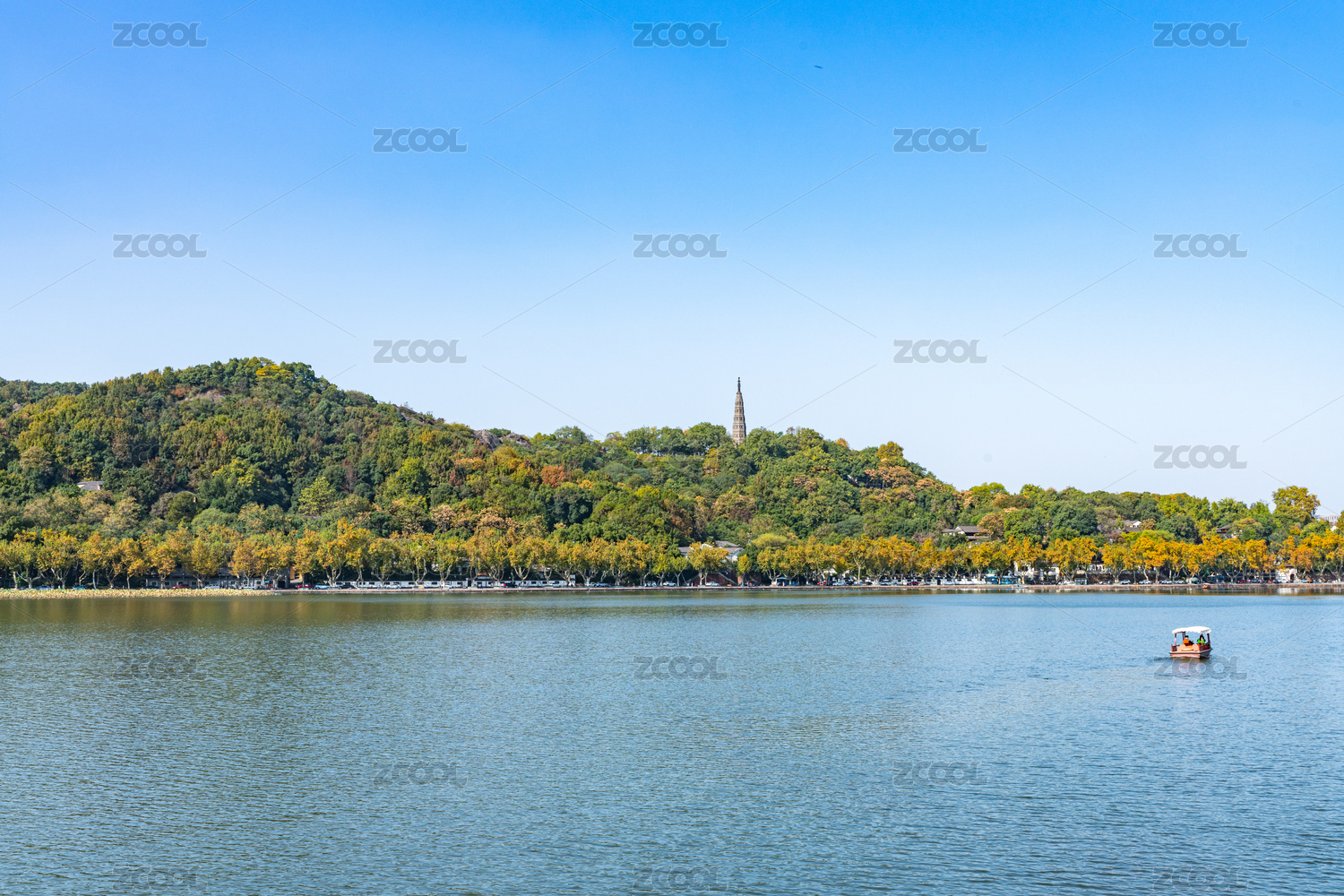 杭州,西湖,湖泊,秋色,湖水,保俶塔,秋天,残荷,黄色,暖色