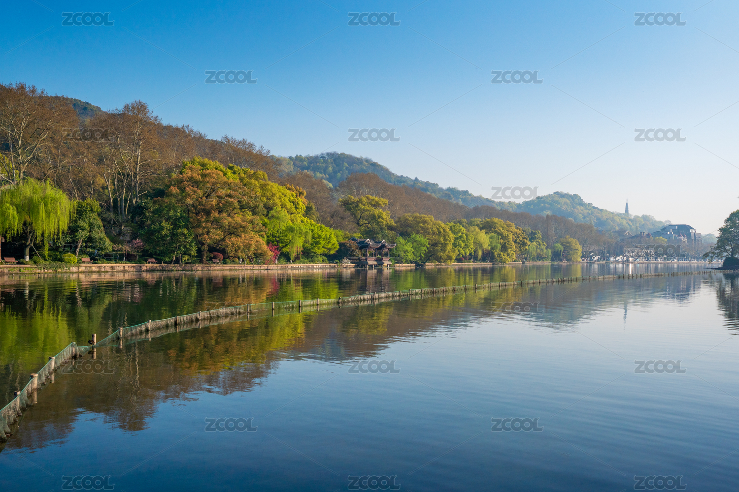 浙江省杭州西湖十景苏堤春晓景点春季风光